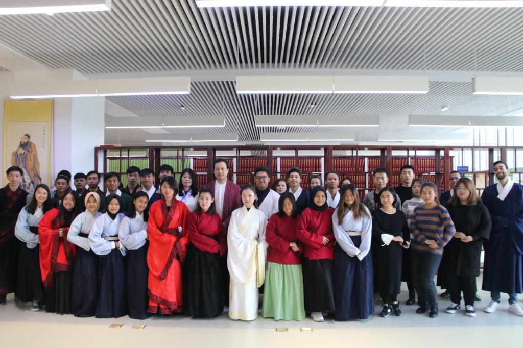 11月22日,商务管理系组织2019级留学生到日照市图书馆尼山书院,开展了一场以“与传统邂逅 与文化赴约”为主题的汉服礼仪、香道体验活动,引导留学生通过参与体验中国传统文化,感受中华传统文化中汉服、香道、古琴、投壶等独特魅力。