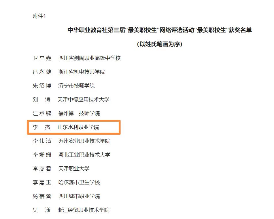 近日,由中华职业教育社组织开展的第三届“最美职校生”网络评选活动结果揭晓。本次活动面向全国职业院校学生,分技术型本科组、高职组和中职组3大专区,从全国范围内评选出30名“最美职校生”,我院在校生李杰获此殊荣。