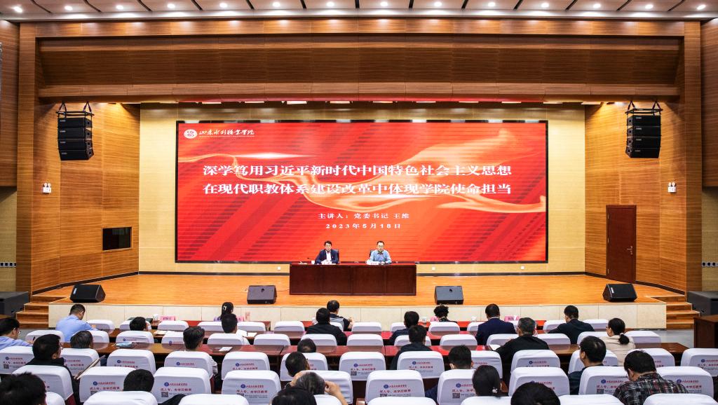 王维以“深学笃用习近平新时代中国特色社会主义思想在现代职教体系建设改革中体现学院使命担当”为题,结合个人学习体会,立足学院发展实际,从深入学习领会习近平总书记关于职业教育的重要讲话和重要指示批示精神,把准现代职业教育的新定位;深入学习贯彻《关于深化现代职业教育体系建设改革的意见》,把握现代职业教育体系改革新主张、新举措;在现代职业教育体系建设背景下,科学规划学院内涵式高质量发展的新路径;深入学习贯彻习近平新时代中国特色社会主义思想,突出党建引领推动主题教育取得实效四个方面与大家进行深入交流,深刻阐述了现代职业教育的新定位、现代职业教育体系改革的新主张和新举措及学院内涵式高质量发展的新路径。