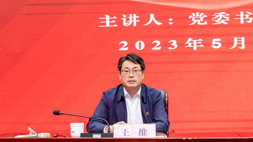 根据学院主题教育工作安排,5月18日下午,党委书记王维在学术会议中心讲授主题教育专题党课。省水利厅人事处二级调研员、主题教育办公室指导推进组副组长马成,主题教育办公室指导推进组成员李秋香到场指导,党委委员、副院长林艳斌主持,学院领导班子成员、全体副科级以上干部、2023年“青马工程”学员代表参加。