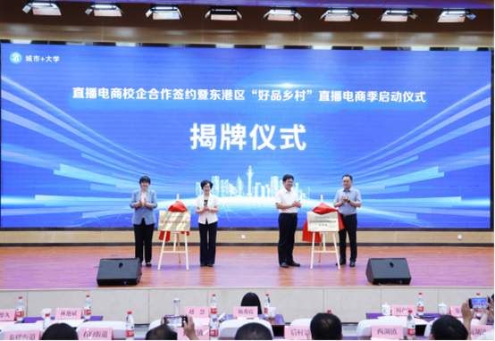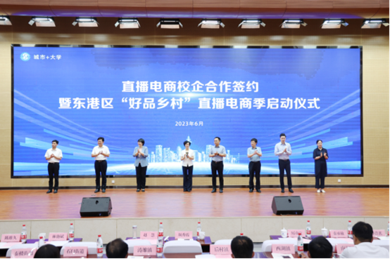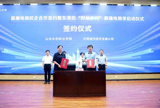 为进一步深化“城市+大学”融合发展,打造校企合作新典范,6月8日,直播电商校企合作签约暨东港区“好品乡村”直播电商季启动仪式在学院举行。党委委员、统战部部长颜秀霞,党委委员、副院长林艳斌,东港区委常委、统战部部长赵慧,东港区委常委、副区长厉彦宝,东港区商务局局长陈维久,日照城市经济发展公司副总经理汪晓玲,日照九衍网络科技有限公司总经理孙浩茗出席活动。商务管理系副主任马斌主持。
