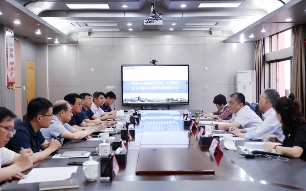 6月9日,山东省市场监管局计量处处长赵风勇、力创科技股份有限公司董事长郝振刚一行5人到我校就“计量应用现场工程师”培养培训项目进行调研座谈,党委书记王维,党委委员、副院长王顺波,相关部门负责同志参加座谈交流。