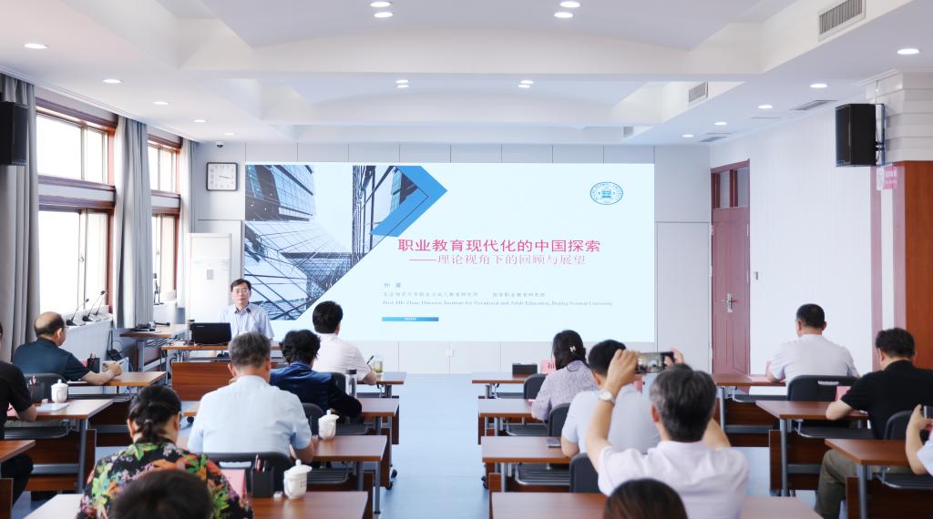 6月15日,北京师范大学国家职业教育研究院院长、教授、博士生导师和震一行应邀来我院就“职业院校教师教育科研能力提升”进行调研,并为学院党员干部作《职业教育现代化的中国探索——理论视角下的回顾与展望》主旨报告。党委书记王维,党委委员、副院长王顺波,党委委员、统战部部长颜秀霞,党委委员、副院长林艳斌等参加调研。