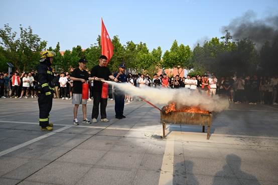 演练结束后消防救援支队消防队员为师生现场讲解了灭火器等消防器材的作用及操作要领,并组织大家进行实战操作训练。