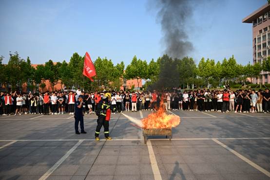 为进一步增强消防应急疏散组织能力,强化师生紧急情况下应急处置能力和逃生技能,6月12日,总务处、学生工作处、机电工程系等部门协同联动,日照市消防救援支队、日照市港口医院协助配合,学院组织开展了消防应急演练,师生代表共500余人参加演练。演练分为火场逃生演练和灭火器材使用培训两部分。