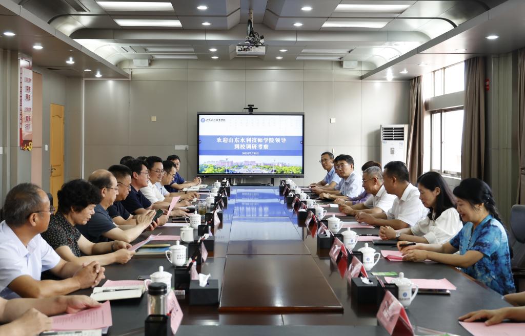 7月13日,山东水利技师学院党委书记于福春、院长边敦典一行来学院考察交流。学院党委书记王维,党委副书记、院长杨敬涛等学院领导班子成员及相关部门负责人参加座谈。