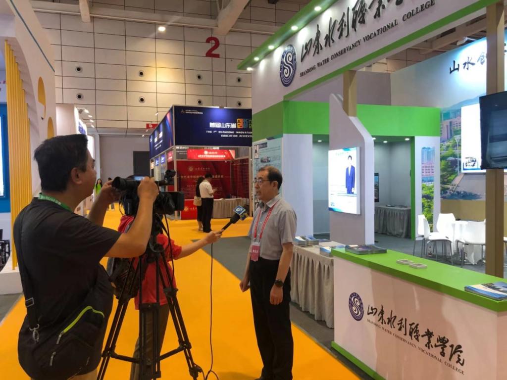 在展会现场,学院党委书记王维与党委委员、副院长王顺波分别接受了山东电视台、山东教育电视台、大众网和新浪网等多家媒体的采访。多家媒体充分肯定了学院在深化创新创业教育改革的举措及在创新创业教育方面取得的特色和成果。