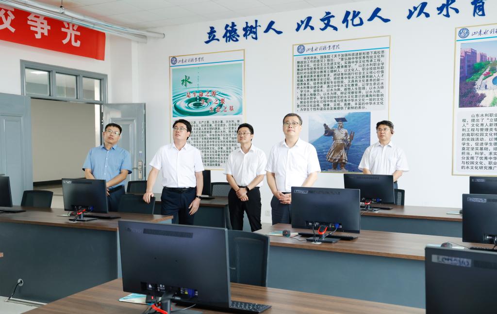 8月17日,省水利厅党组成员、副厅长崔培学到学院调研指导工作,听取了学院工作和发展规划的汇报,并实地参观了学院智慧水利实训中心、智慧水务实训中心、节水灌溉实训室、安全监测实训室、摄影测绘实训室、建筑装饰施工实训室、智能建造实训室、山东水利安全生产教育基地实体体验馆等实训基地,同教师亲切交流。学院党委书记王维,党委副书记、院长杨敬涛陪同调研。