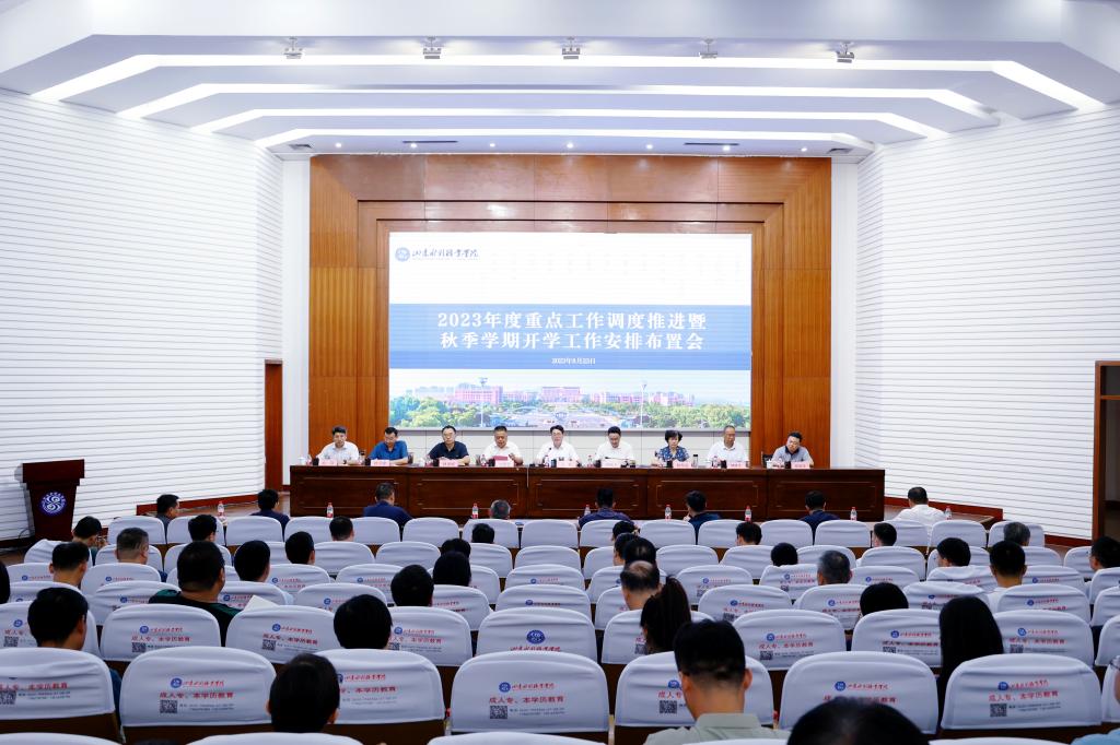 8月23日下午,学院在学术报告厅召开2023年度重点工作推进调度暨秋季学期开学工作安排布置会。学院党委书记王维主持会议并讲话。学院党委副书记、院长杨敬涛总结学院上半年取得的成效,安排部署秋季学期开学前后重点工作。学院领导、副科级及以上干部、从事副科级岗位工作人员参加会议。