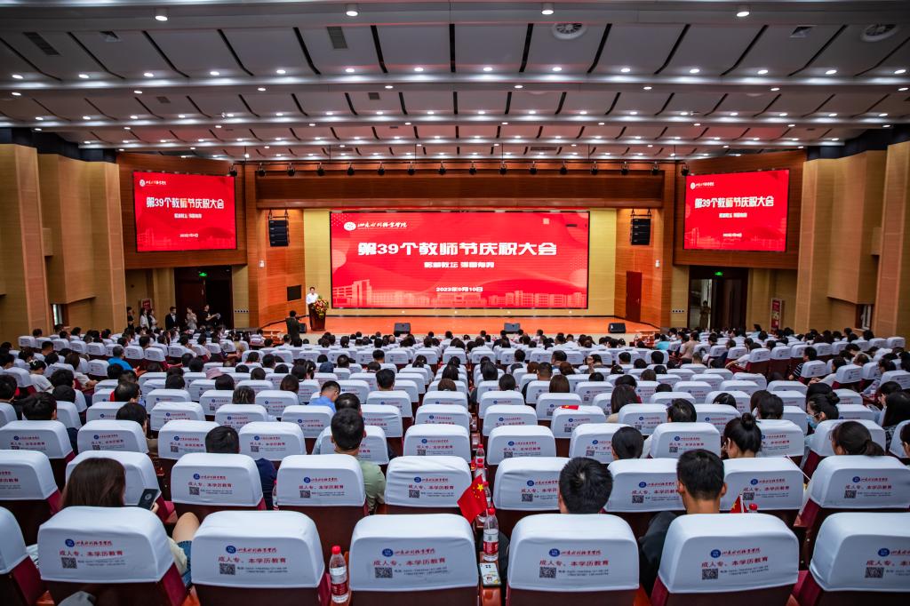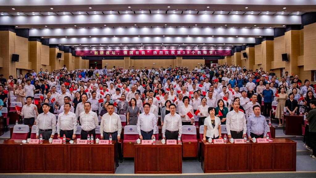 9月10日下午,学院在学术会议中心举行第39个教师节庆祝大会,传达学习习近平总书记向全国优秀教师代表的重要致信精神,引导广大教师牢记为党育人、为国育才的初心使命,树立“躬耕教坛、强国有我”的志向和抱负,践行新时代人民教师的崇高使命。学院领导、全体教职工及学生代表出席庆祝大会。大会在庄严肃穆的国歌声中拉开序幕。