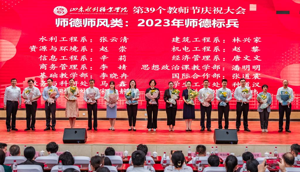 王维强调,全体教职员工要从三个方面践行“躬耕教坛,强国有我”的庄重承诺。一要坚守初心育英才。全体教师要强化理论武装,牢固树立“躬耕教坛,强国有我”的志向与抱负,全员全方位全过程强化师德养成,争当“四有”好老师,争做“四个”引路人。二要锤炼自我强本领。广大教师要心无旁骛,爱岗敬业,练好教学本领、育人本领、实践本领、创新本领,在服务国家重大战略和水利行业高质量发展中体现水院使命担当。三要挺膺担当抓好落实。全体教师要紧紧围绕建设国家职业院校“双高校”的目标,按照学院党委行政年度重点任务布置安排,主动认领任务,逐项细化措施,踔厉奋发、奋而不辍开创学院内涵式高质量发展新局面。