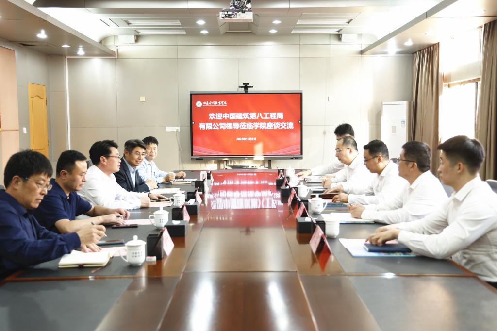 11月1日,中建八局第二建设有限公司淮海公司党总支书记、总经理刘传勇一行5人到校座谈交流,与学院签署战略合作协议。学院党委书记王维及相关部门负责人出席活动。