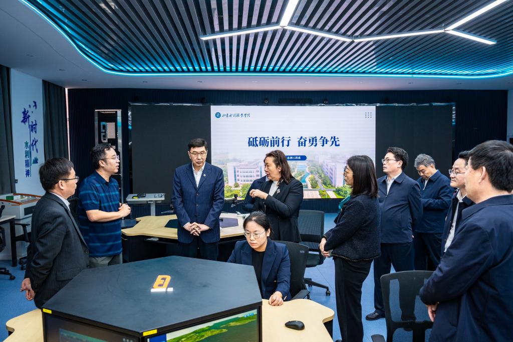 启动仪式后,专家实地调研了学院智慧水利实训中心、智慧水务虚拟仿真实训中心、数字摄影测量中心实训室、智能水厂实训室、智能建造实训室、山东水利安全生产教育基地VR体验馆、无人机飞行学院、西门子PLC实训室、割绒纳绣非遗传承工作室等校内实训基地,并召开了座谈交流会,把脉学院发展方向,深挖典型经验和案例,传播发展经验。