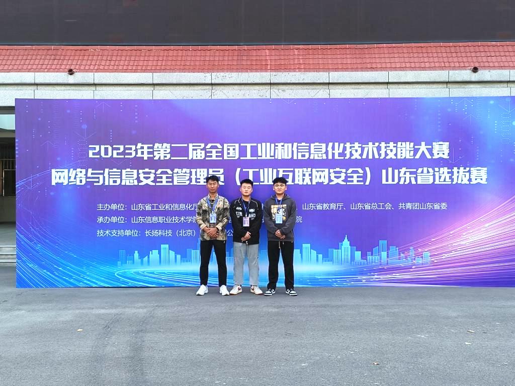近日,2023年第二届全国工业和信息化技术技能大赛网络与信息安全管理员赛项(工业互联网安全)山东省选拔赛在潍坊举行,来自全省职业院校20支代表队60名选手同场竞技。学院参赛选手明乃浩、王庆铎、何俊辰3人组成的团队荣获团体一等奖并成功晋级国赛。