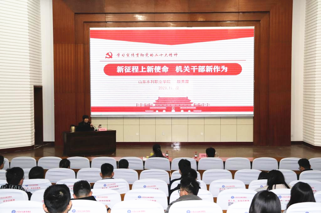 22日,学院党委委员、副院长、统战部部长颜秀霞在学术报告厅为全体学员作《新征程上新使命,机关干部新作为》专题报告。报告会后,学员们参观了学院山东水利安全生产教育基地、智慧水利虚拟仿真实训中心等实训基地。