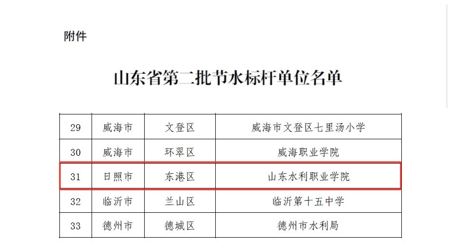 近日,山东省水利厅、发展和改革委员会、教育厅等8部门联合发文,公布山东省第二批节水标杆单位。学院荣获“山东省节水标杆单位”称号。