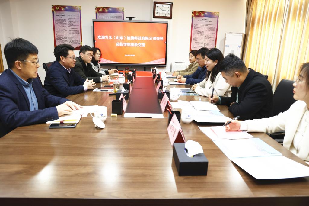 12月1日,升禾(山东)检测科技有限公司董事长乔惠君一行5人来校考察交流。学院党委书记王维,办公室、资源与环境系、产教融合发展中心相关负责人参加座谈。