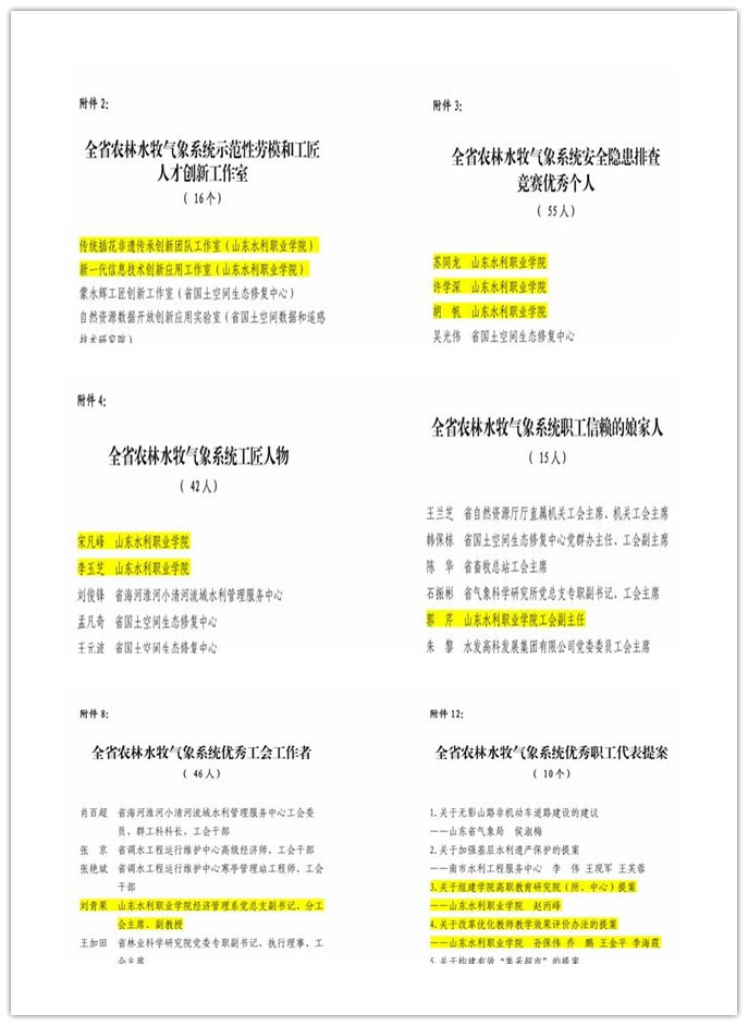 近日,山东省农林水工会公布了《关于公布2023年度全省农林水牧气象系统“乡村振兴杯”和“建设绿色安澜黄河”创新创优竞赛项目选树激励情况的通知》,在本次全省农林水牧气象系统创新创优竞赛中,学院共申报了6类项目,获11项表彰,获奖总数居首位。