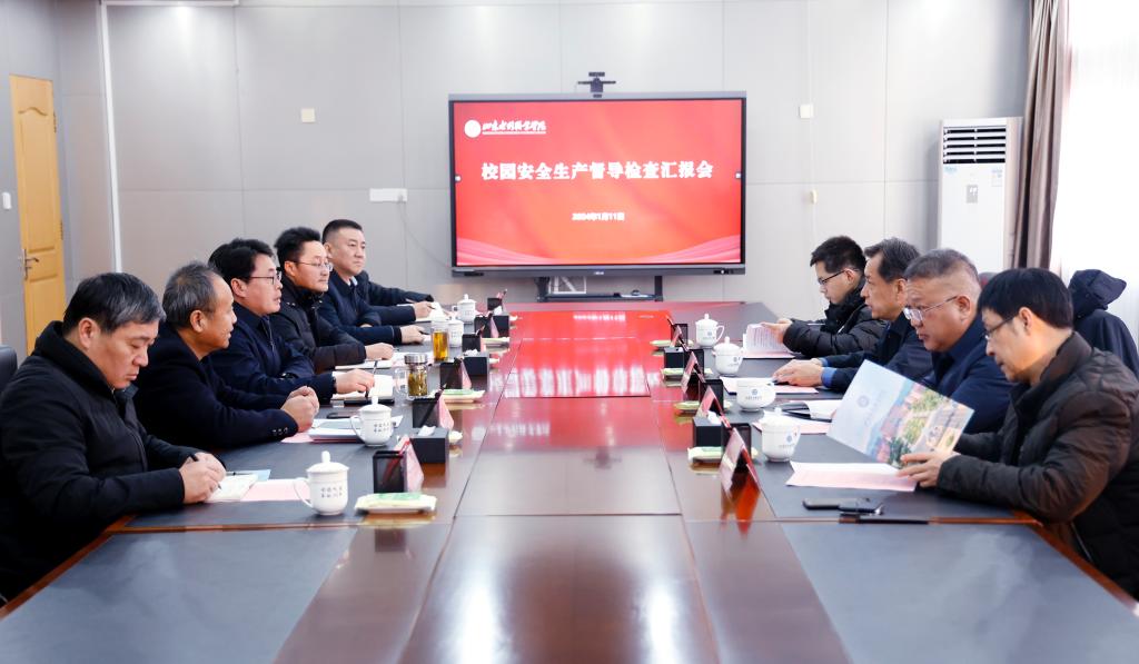 1月11日,省水利厅二级巡视员刘长军等一行5人组成的“岁末年初水利安全生产风险隐患专项整治工作”检查组来学院检查指导安全工作。学院党委书记王维,党委副书记、院长杨敬涛,党委委员、副院长刘秋生及学生工作处、总务处等部门负责人陪同检查。