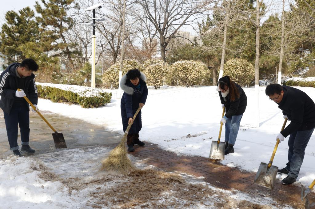 受近日冻雨和大雪影响,校园路面产生积雪、结冰情况,对师生出行带来了极大的不便。为保证春季学期顺利开学和车辆通行安全,2月22日,在学院党员干部上班第一天,学院积极组织全体党员干部清扫校园积雪,为师生开学提供便利,消除交通安全隐患。