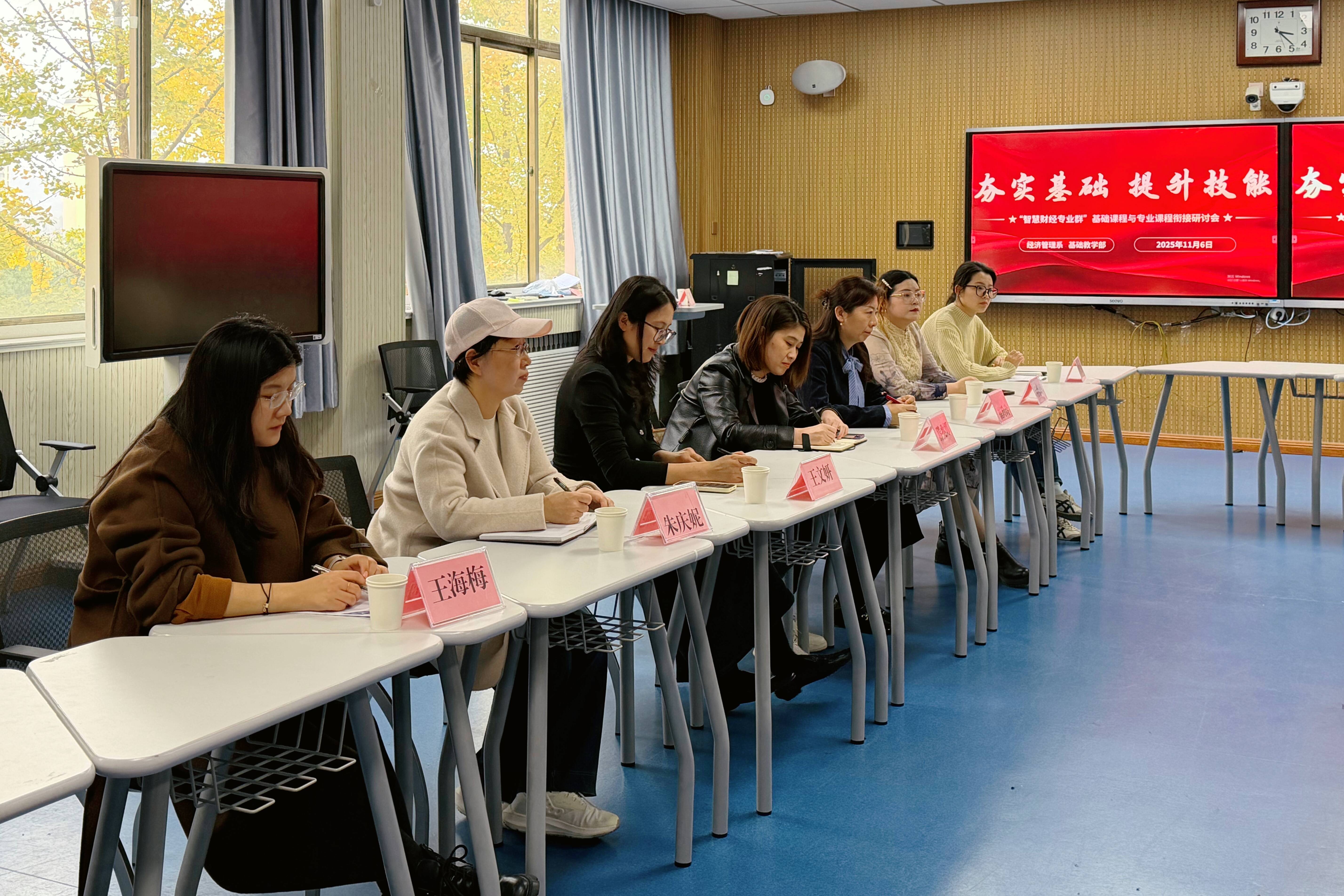 为深化“智慧财经专业群”建设,推动基础课程与专业课程的有效衔接,11月6日下午,经济管理系与基础教学部联合举办“夯实基础 提升技能”主题研讨会。会议聚焦Python编程、宏观经济学、债券投资学等专业课程与英语、数学等公共基础课程的协同整合,两部门骨干教师代表围绕教学内容渗透、资源共建等议题展开深入交流。