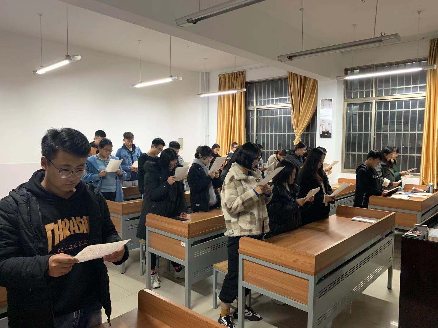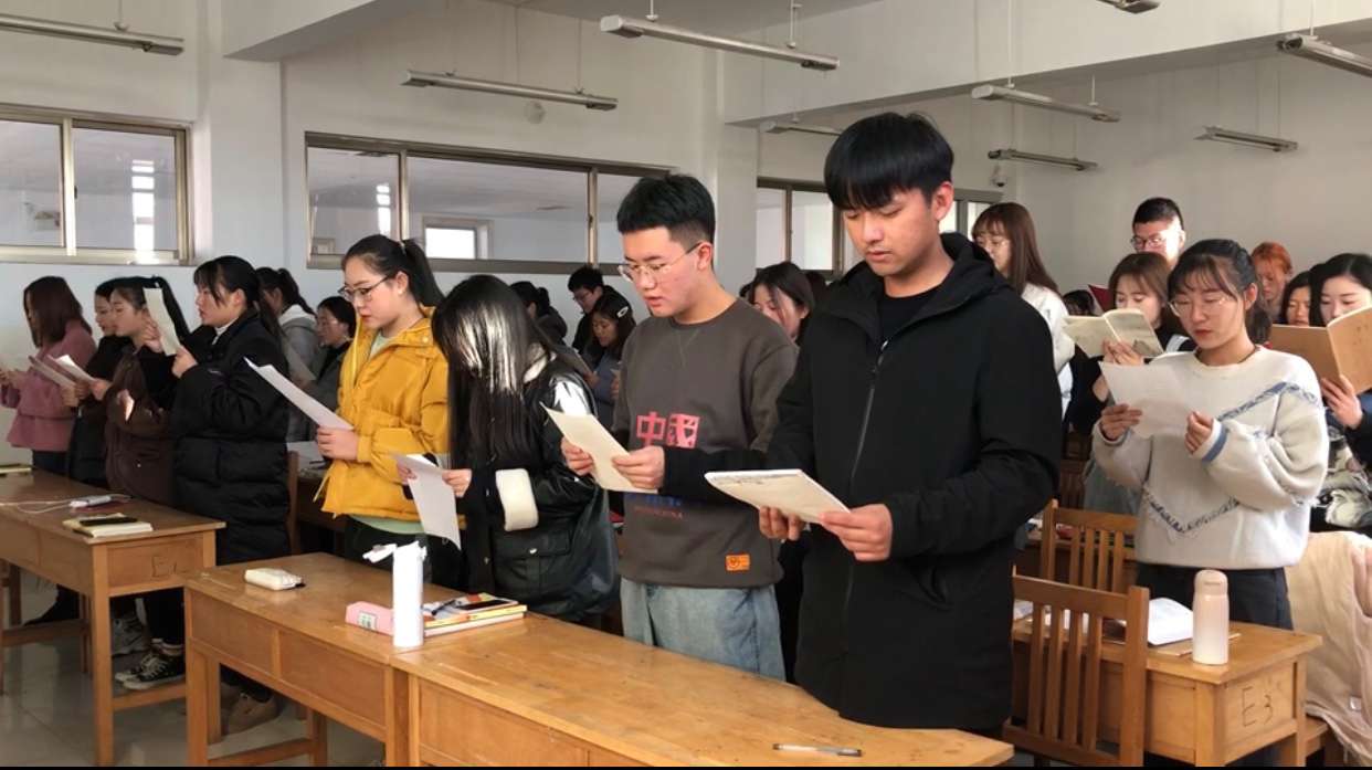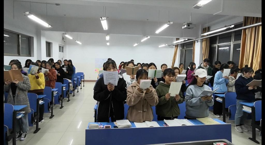 活动分为两个阶段。首先,各班以班级为单位开展“课前五分钟”经典诵读,通过课前的集体诵读来感受中华文化的博大精深。同学们积极参与,慷慨激昂,通过领读、齐读等方式,用自己的方式将传统经典作品用声情并茂的方式演绎出来。所涉及的篇目涵盖古今,有《诗经》、《琵琶行》、《沁园春·雪》、《满江红》、《少年中国说》等经典作品。