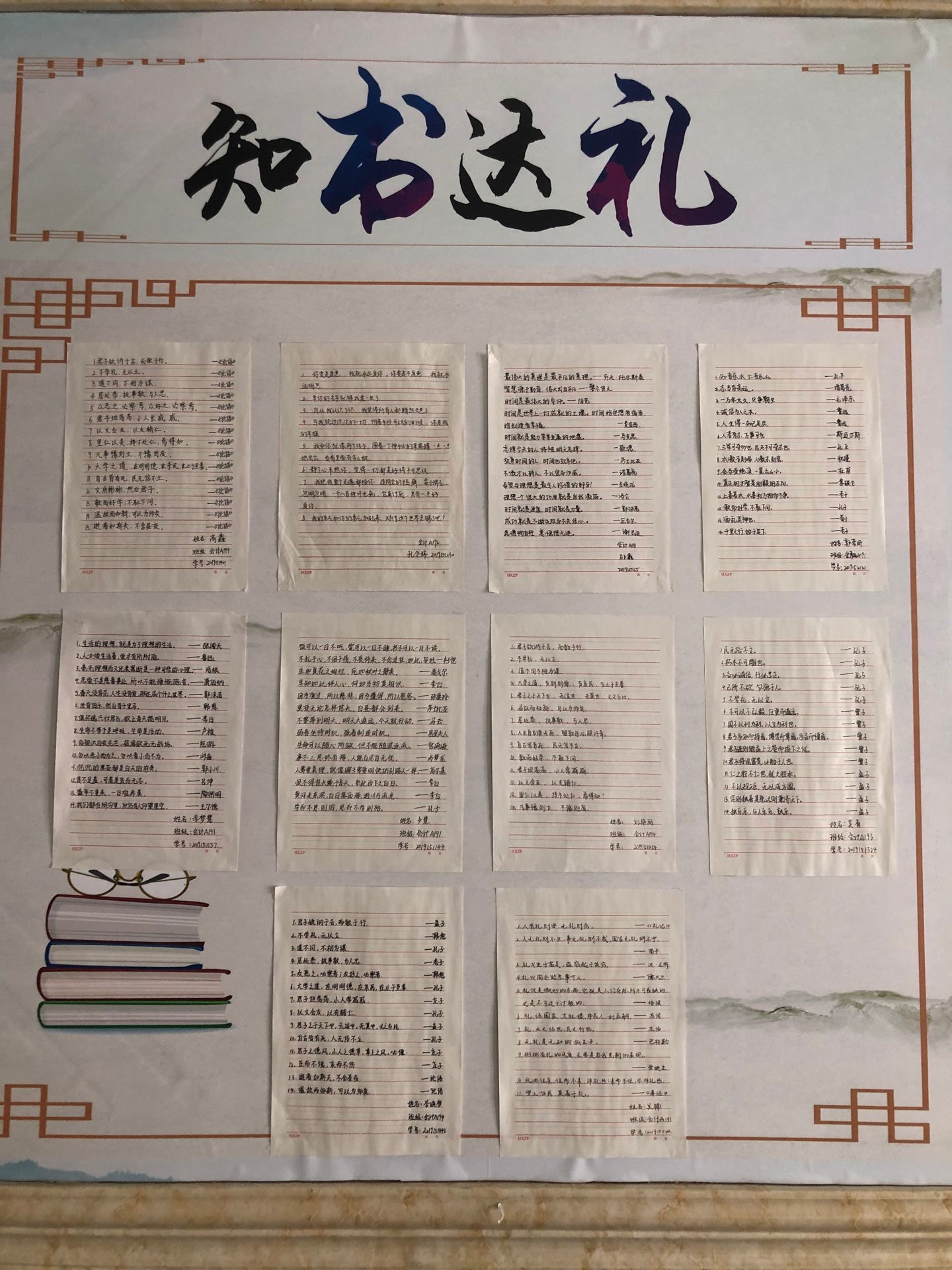 其次,开展“每周一摘”最美读书摘抄评选活动。同学们踊跃参与,通过阅读与礼仪文明相关的书籍,与他人分享自己心中的经典佳句。活动期间,每两周评选一次最美摘抄,并张贴于公示栏,供大家共同学习。