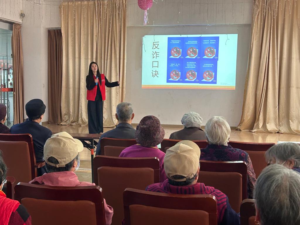在宣讲会上,志愿者结合自身所学专业,通过丰富的数据和鲜活的案例,从生活中常见的诈骗手段、如何识别保健品的伪装等方面,提醒老年人日常生活中不要贪图便宜、轻信转账,提升识诈防骗意识。现场还模拟了诈骗场景,通过角色扮演和互动问答,不仅加深了老人们对反诈知识的理解,更提高了自我防范的意识和能力。