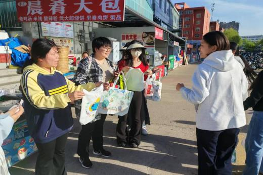 学生在纯白布袋上手绘垃圾分类标识、环保标语及生态图案,将艺术创作与环保科普相结合。随后,志愿者们走进社区,向居民发放200余个环保布袋,并现场讲解分类知识。同学们表示:“这些布袋比发传单管用,居民拎着去买菜,分类知识自然就传开了。”