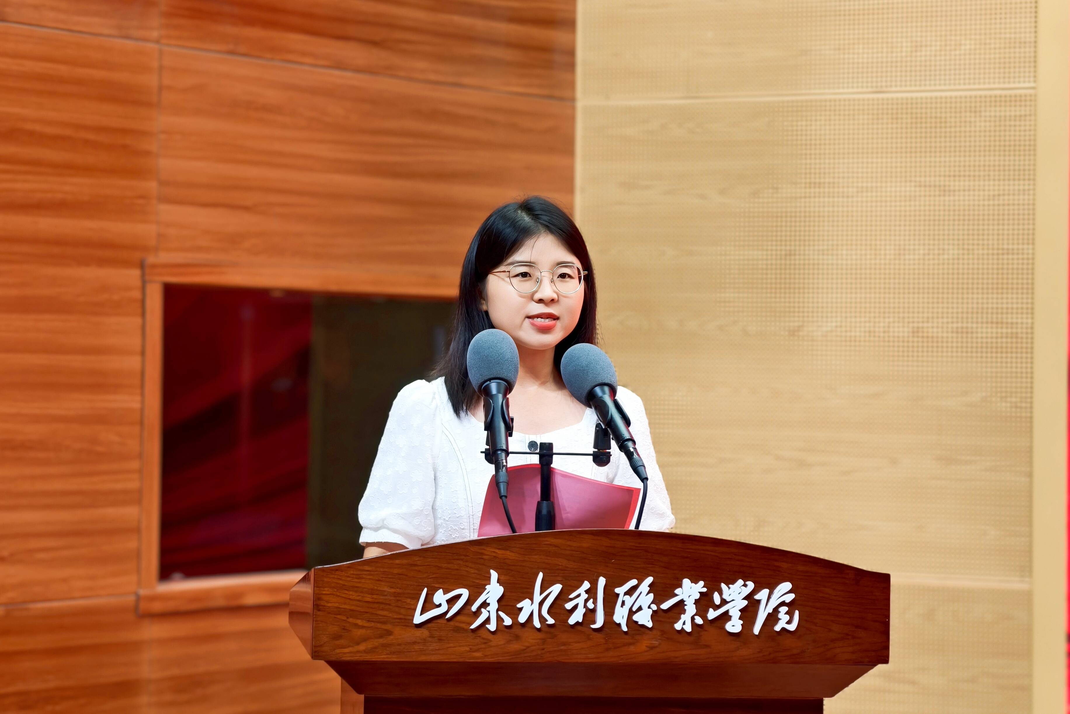经济管理系周丽老师代表全体教师发言,与同学们分享了大学期间需要完成的成长转变,寄语同学们在未来的学习生活中要厚植专业根基、锤炼实战能力、涵养职业品格。