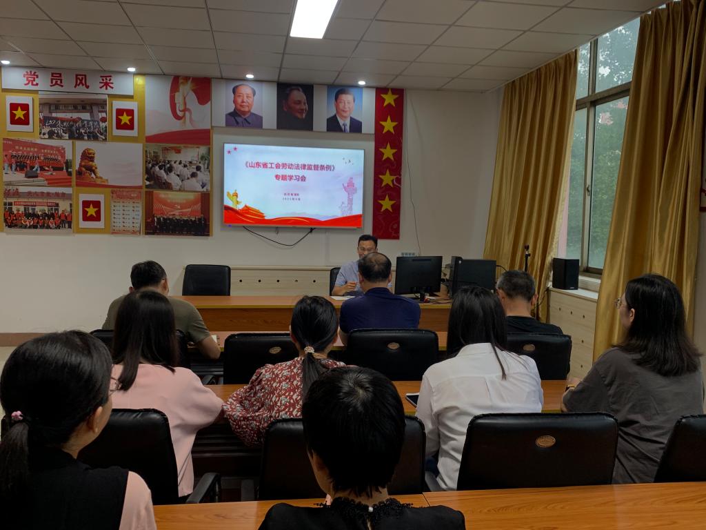 大家通过学习会了解了《山东省工会劳动法律监督条例》是对《工会法》、《劳动法》、《劳动合同法》和《劳动保障监察条例》等法律法规中关于工会劳动法律监督规定的补充和细化,《山东省工会劳动法律监督条例》的颁布和实施,对进一步维护职工劳动经济权益,促进构建和谐劳动关系和健康发展,引领和规范工会劳动法律监督工作,更好地履行工会职责等都具有重要的现实意义。全体参会老师认真学习《山东省工会劳动法律监督条例》内容,学习现场秩序井然、氛围浓厚。