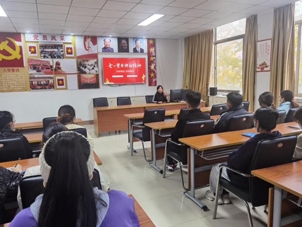 为深入学习习近平总书记“七一”重要讲话,2021年11月19日下午,经济管理系党总支在4423党员活动室举行了以“不忘初心跟党走,青春筑梦新时代”为主题的党课学习活动,主讲人为经管系第二党支部书记张燕同志,2020级40名入党积极分子积极参与学习。