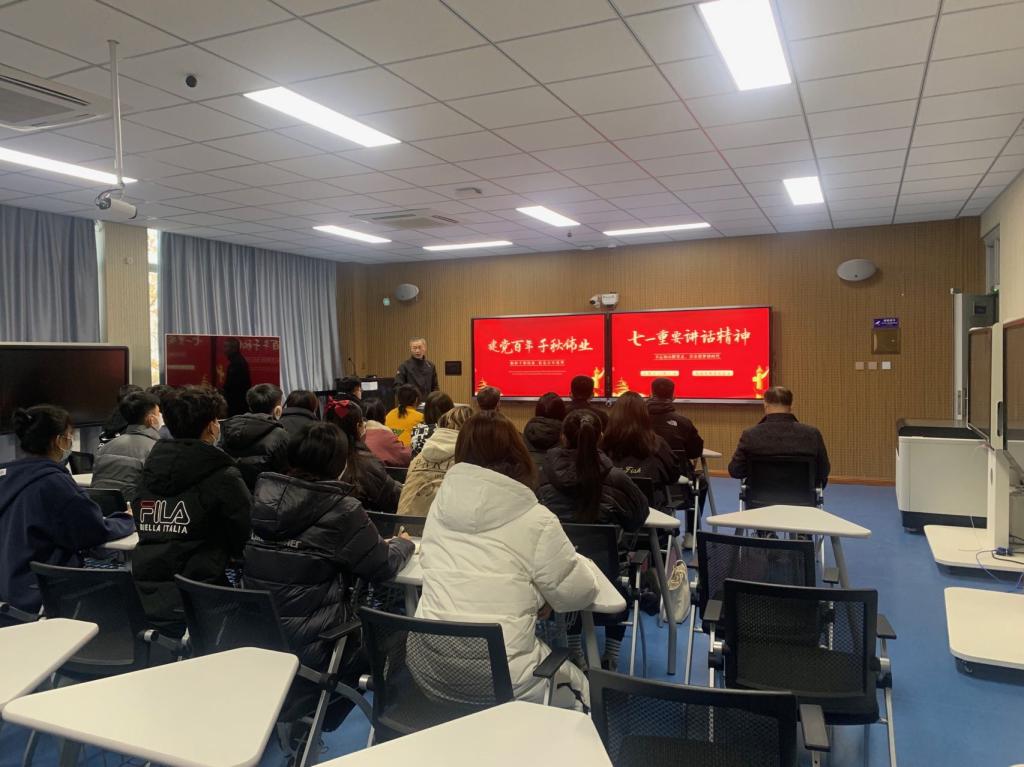 为庆祝建党100周年,凝聚团结力量,激励全体学生干部不忘初心、牢记使命,更好地发挥先锋模范带头作用,11月2日,经济管理系党总支书记曹广占同志以“勇于担当踏实干 奋斗途中绽光彩”为题,为2021级全体学生干部上了一堂生动的“七一”专题党课。
