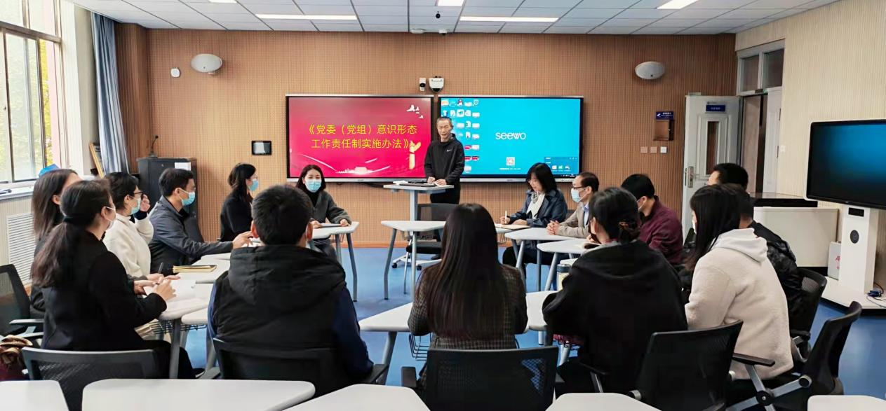 11月3日,经济管理系党总支开展《党委(党组)意识形态工作责任制实施办法》专题学习会, 经济管理系党总支书记曹广占同志强调,意识形态工作是党的一项极其重要的工作,要坚持党管意识形态,牢牢掌握意识形态主动权、管理权、话语权。他要求,每位教师要按照《党委(党组)意识形态工作责任制实施办法》,实施“一岗双责”制度,将学生意识形态、身心安全责任制落实到具体责任人。同时,全体党员教师要认真学习,抓好贯彻落实,特别是在工作过程中一定要发挥党员带头作用和党员先锋模范作用,明大德、守功德、严私德,自觉践行社会主义核心价值观,了解习近平新时代中国特色社会主义思想的共同价值取向,切实增强意识形态工作的针对性和时效性。