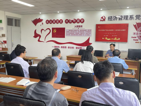6月9日下午,经济管理系党总支召开党课学习会议,集体学习了中国共产党山东省第十二次代表大会精神,刘青果同志主持,全体党员老师参与了党课学习活动。