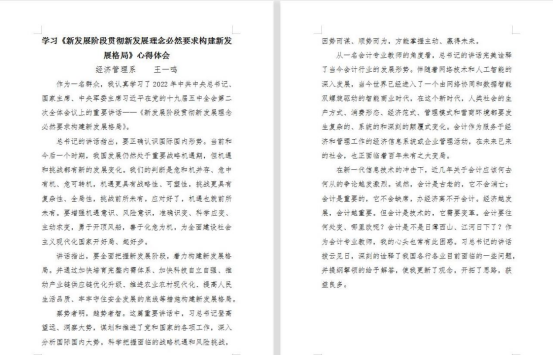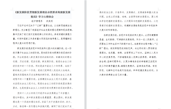 会后,与会同志结合习近平总书记重要文章《新发展阶段贯彻新发展理念必然要求构建新发展格局》和自身工作实际撰写了心得体会。