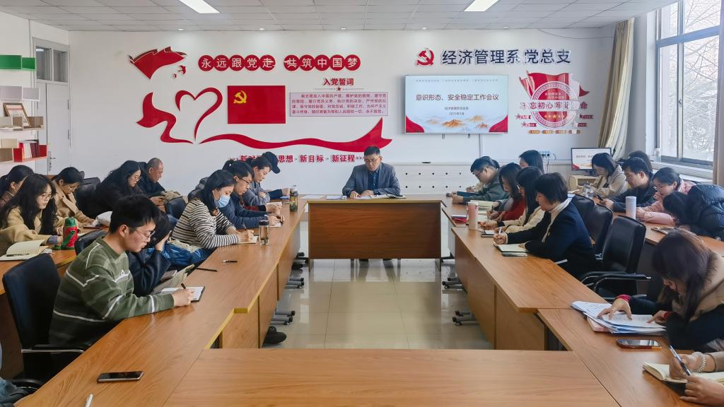 近日,经济管理系召开党风廉政建设、意识形态和安全稳定工作会议。经济管理系党总支书记王健主持,全体教师参会。