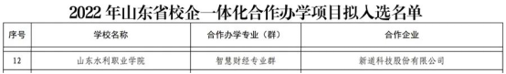 近日,山东省教育厅发布《关于山东省现代职业教育质量提升计划部分项目评审认定结果的公示》。其中,我校联合新道科技合作办学的智慧财经专业群,入选2022 年山东省校企一体化合作办学项目拟入选名单。