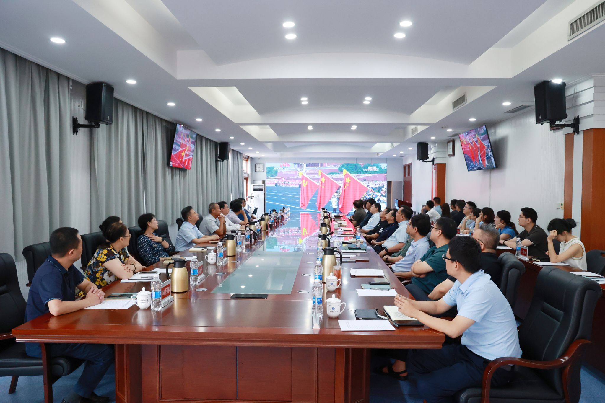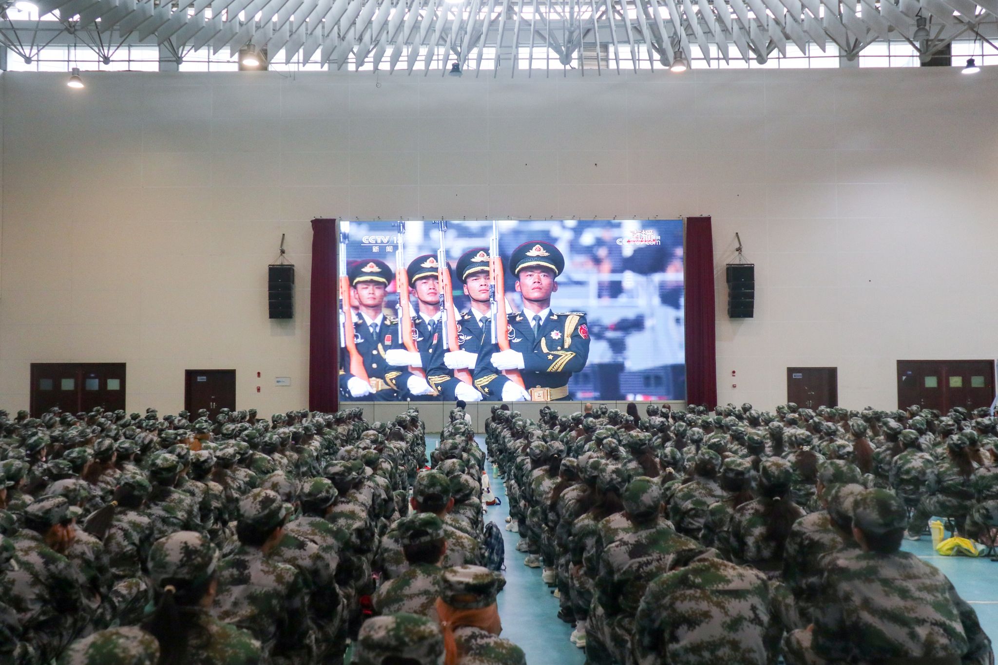 党委理论学习中心组成员在大会议室集体收看直播,师生分系部在学术报告厅、学术会议中心、体育馆及各班级教室等场所有序收看。