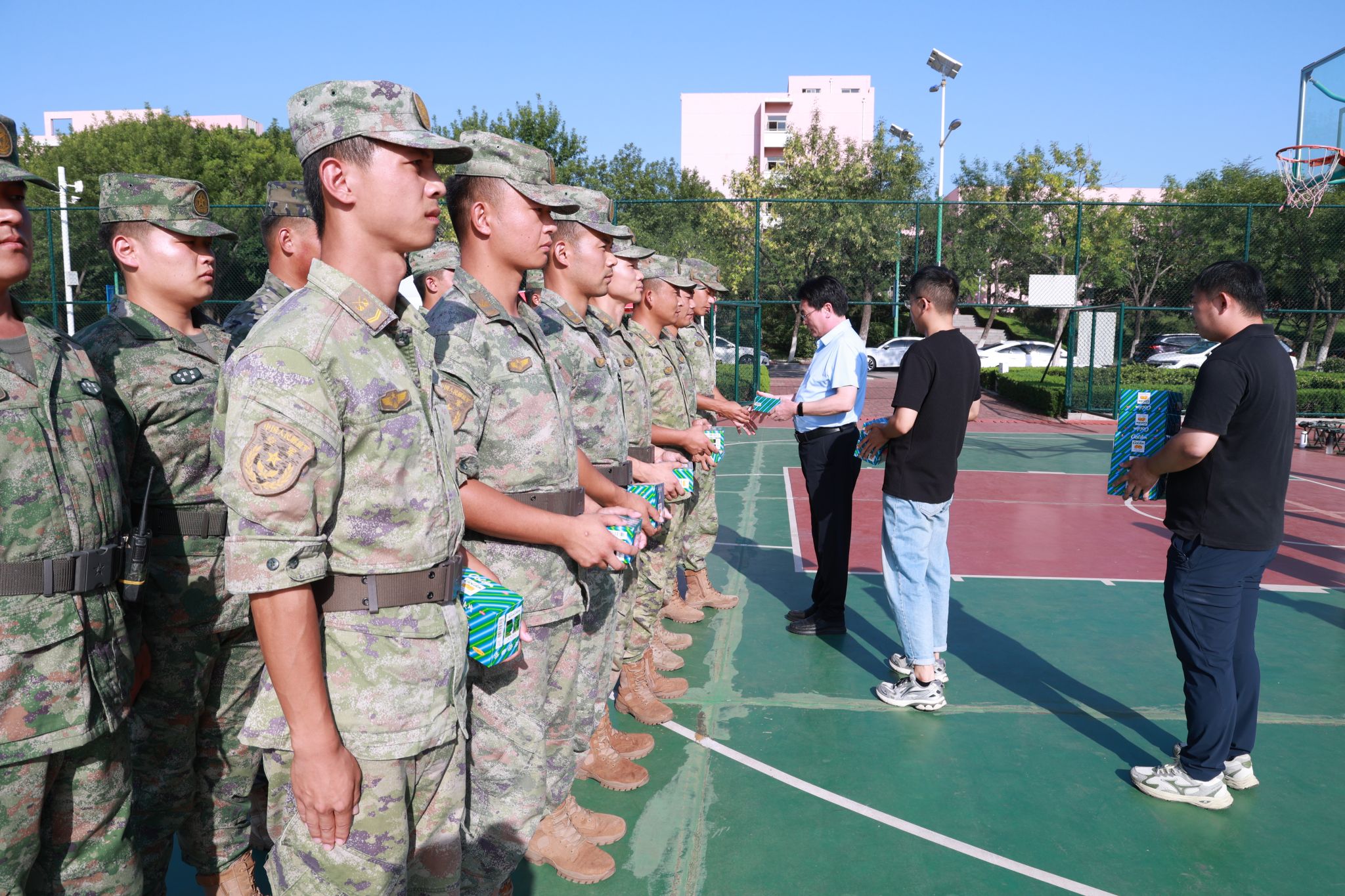 在军训现场,王维代表学院向承训教官表达亲切问候,并向教官代表赠送慰问品,对教官们的辛勤付出表示衷心感谢。