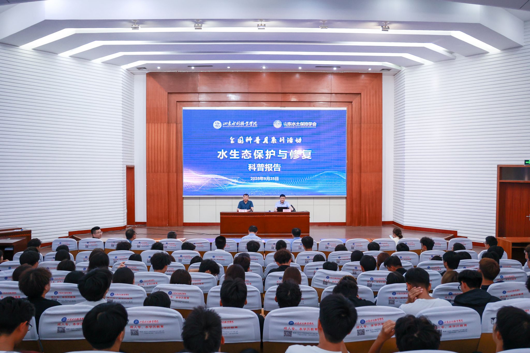 此次报告不仅充分彰显了科普育人的功能,更是学院深化 “产教融合、校企协同” 的重要举措。作为 “山东省科普工作室” 和 “山东省水情教育基地”,学院始终将水生态科普教育与人才培养紧密结合,积极整合行业资源,搭建起广阔的学习交流平台。下一步,学院将继续围绕办学特色和专业优势,不断丰富科普形式与内容,推动科普与教学、实践的深度融合,为生态文明建设贡献更多的智慧和力量。(审核:孔锋 崔灵智 )
