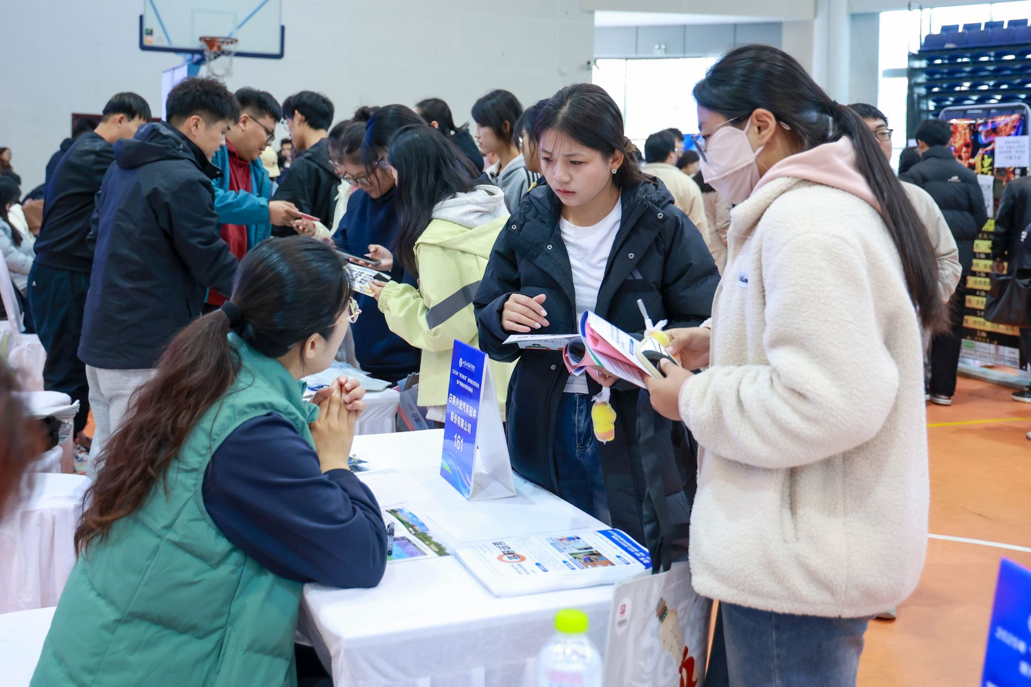 双选会现场气氛热烈、井然有序。同学们手持精心准备的简历,围绕岗位要求、职业发展空间等问题与企业招聘人员深入沟通;企业招聘人员耐心解答疑问,详细介绍企业优势与岗位细节,部分学生与企业当场达成初步就业意向。现场还设置了简历辅导、面试指导、生涯规划、征兵入伍等就业指导区,不仅让同学们明确未来职业规划,获得个性化求职建议,也能更好了解自身职业兴趣和适应性,享受“沉浸式”求职体验,助力学生与用人单位实现高效、精准的双向匹配。