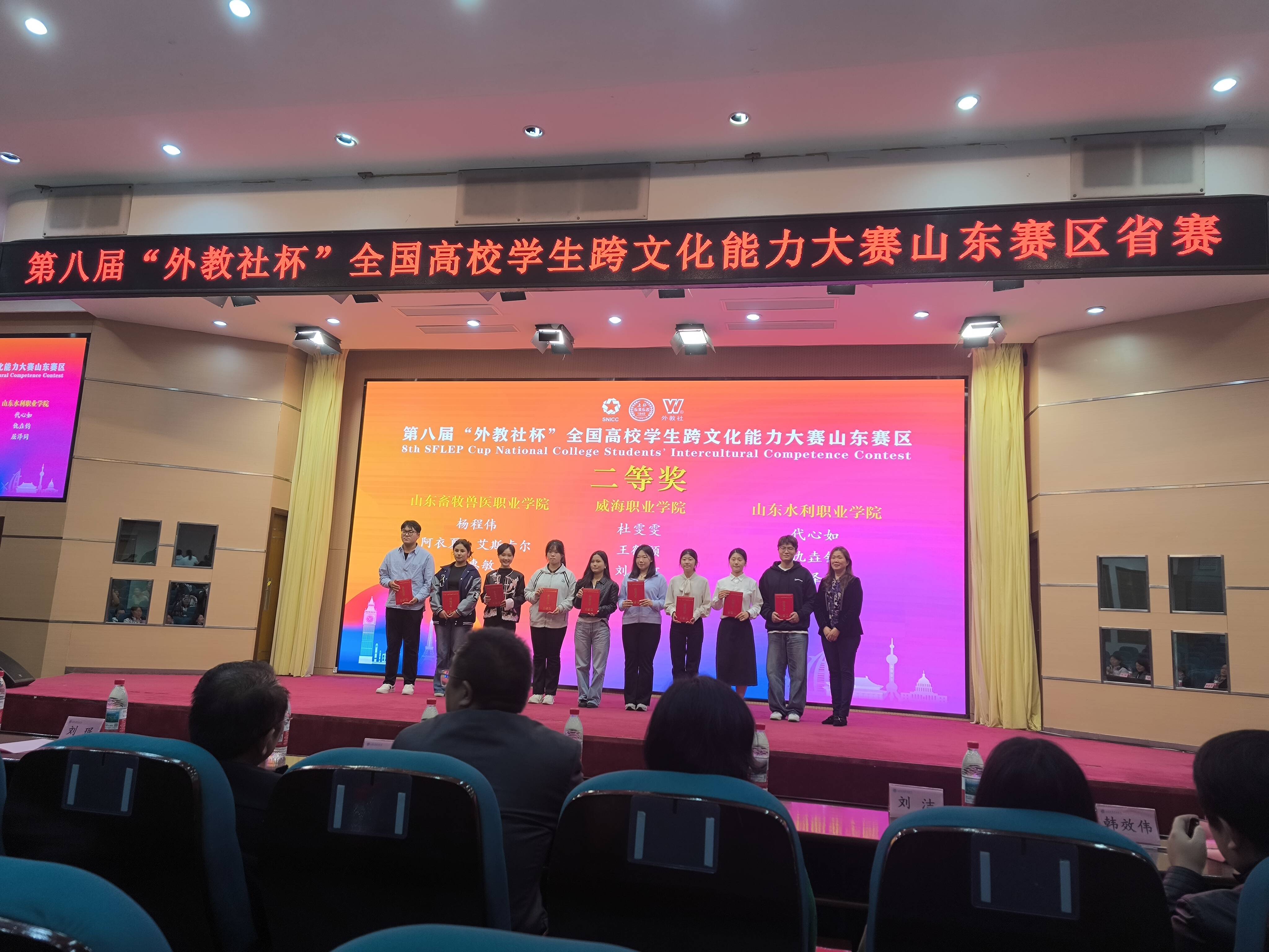 近日,第八届“外教社杯”全国高校学生跨文化能力大赛(山东赛区)圆满落幕。学院学子代心如、仇垚均、屈泽同凭借出色表现荣获二等奖,胡金玲、申慧两位教师获评“优秀指导教师”称号。