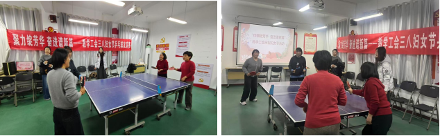 活动当天,体育馆N207内洋溢着欢乐与喜庆的节日氛围。活动内容多样,精彩纷呈。其中,乒乓球友谊赛成为了本次活动的亮点之一。赛场上,女性教职工们以球会友,展现了不凡的运动风采和竞技精神。