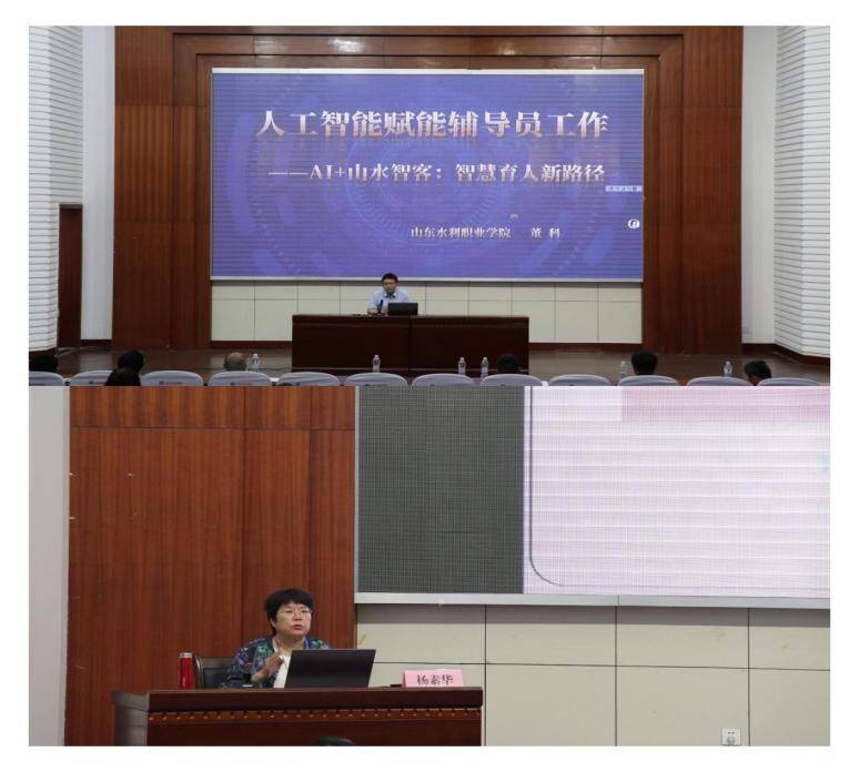 此次培训分别邀请山东积极心理学会理事长、山东省大学生心理健康教育专委会副主任委员杨素华,学院产教融合中心董科做了谈心谈话和人工智能赋能辅导员工作的专题讲座;学院优秀教师代表分别围绕辅导员日常谈心谈话和安全教育主题班会方面做了经验分享。