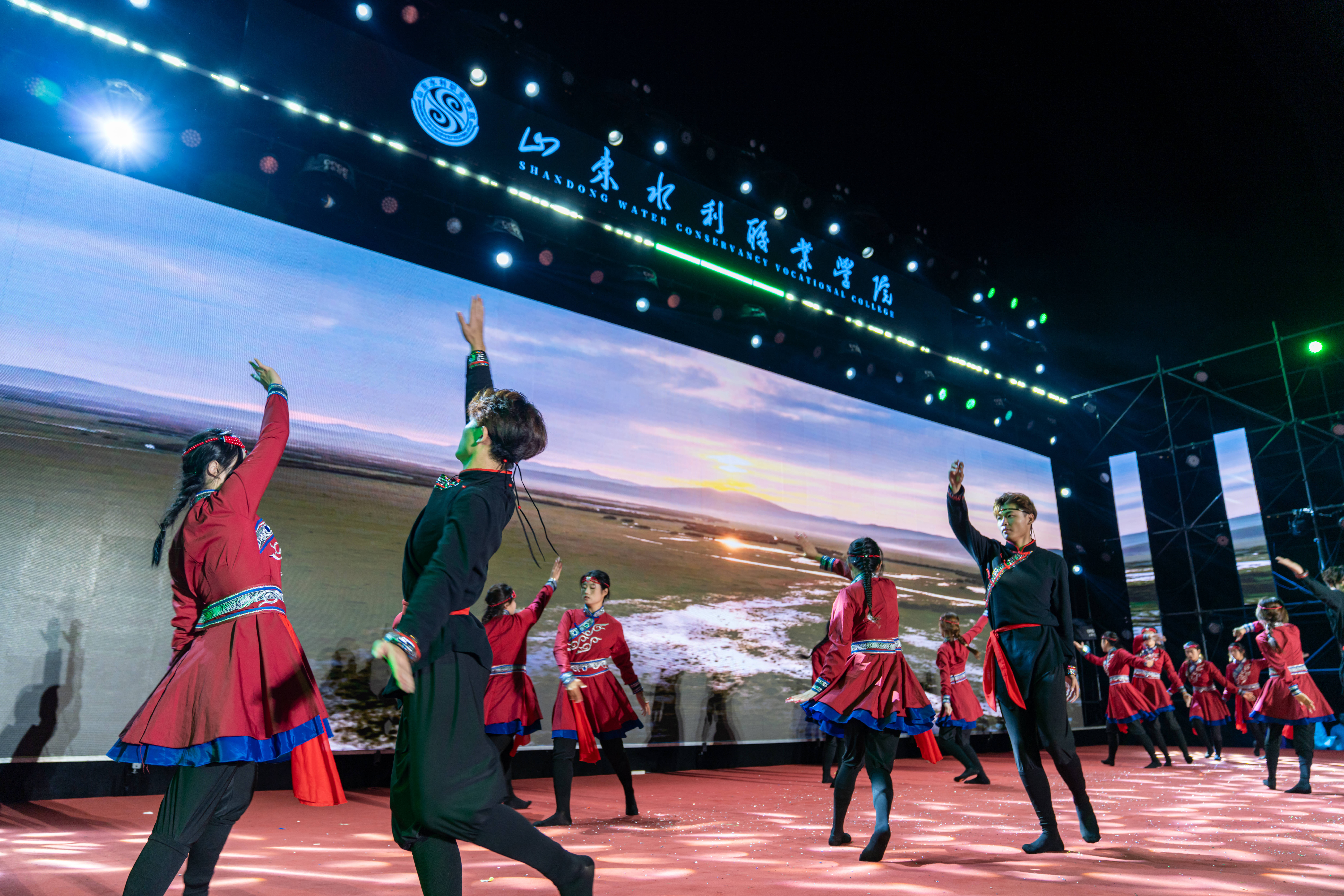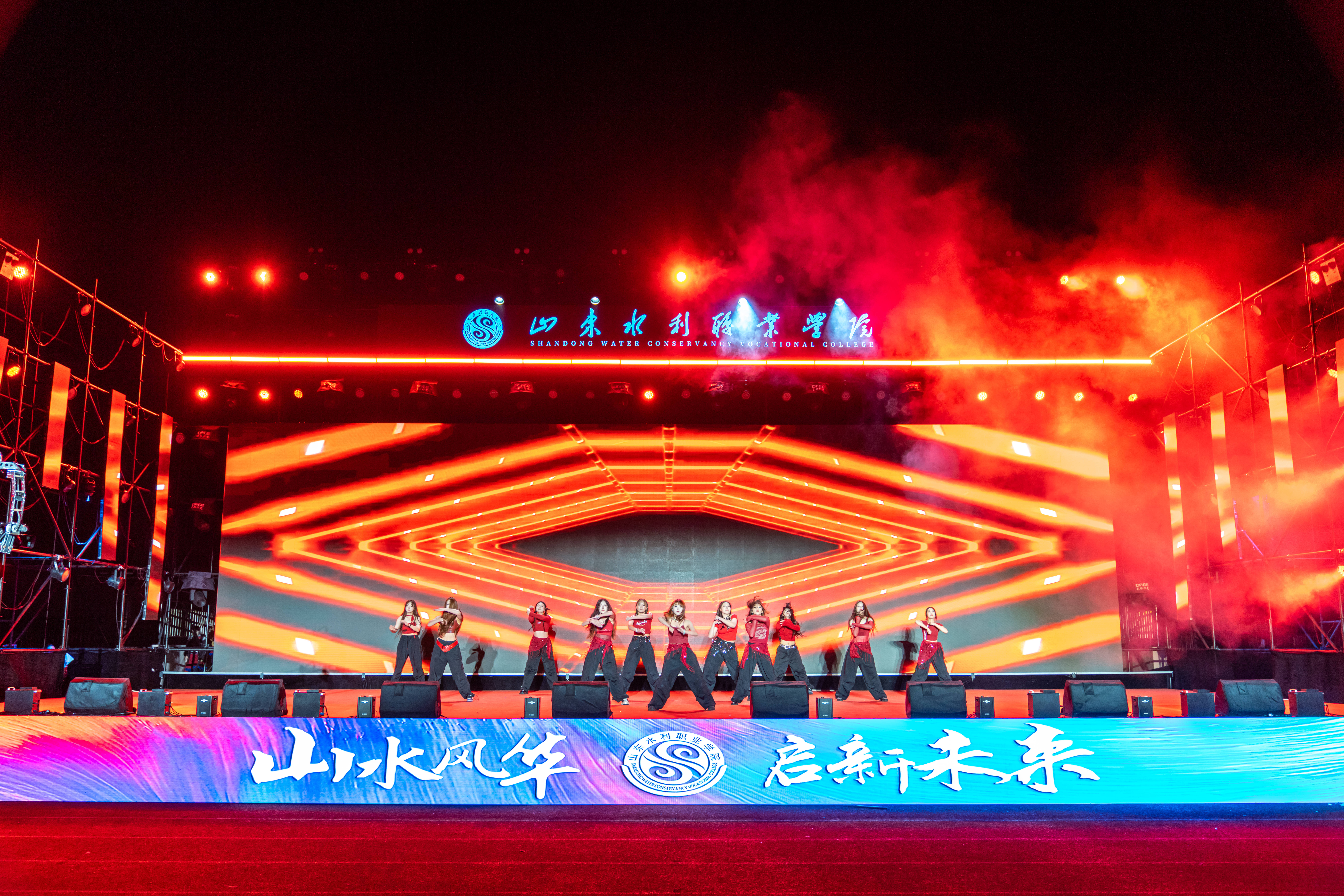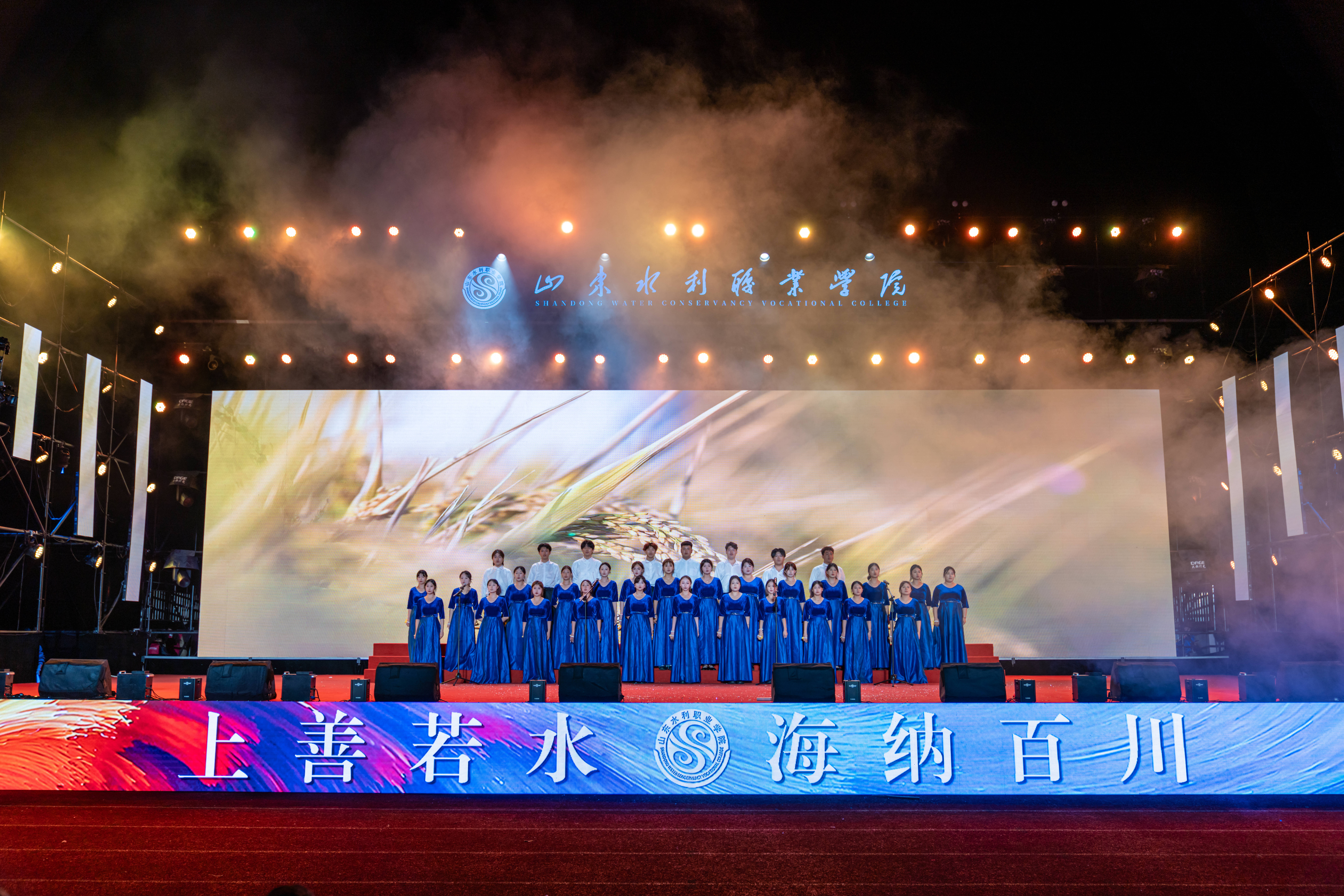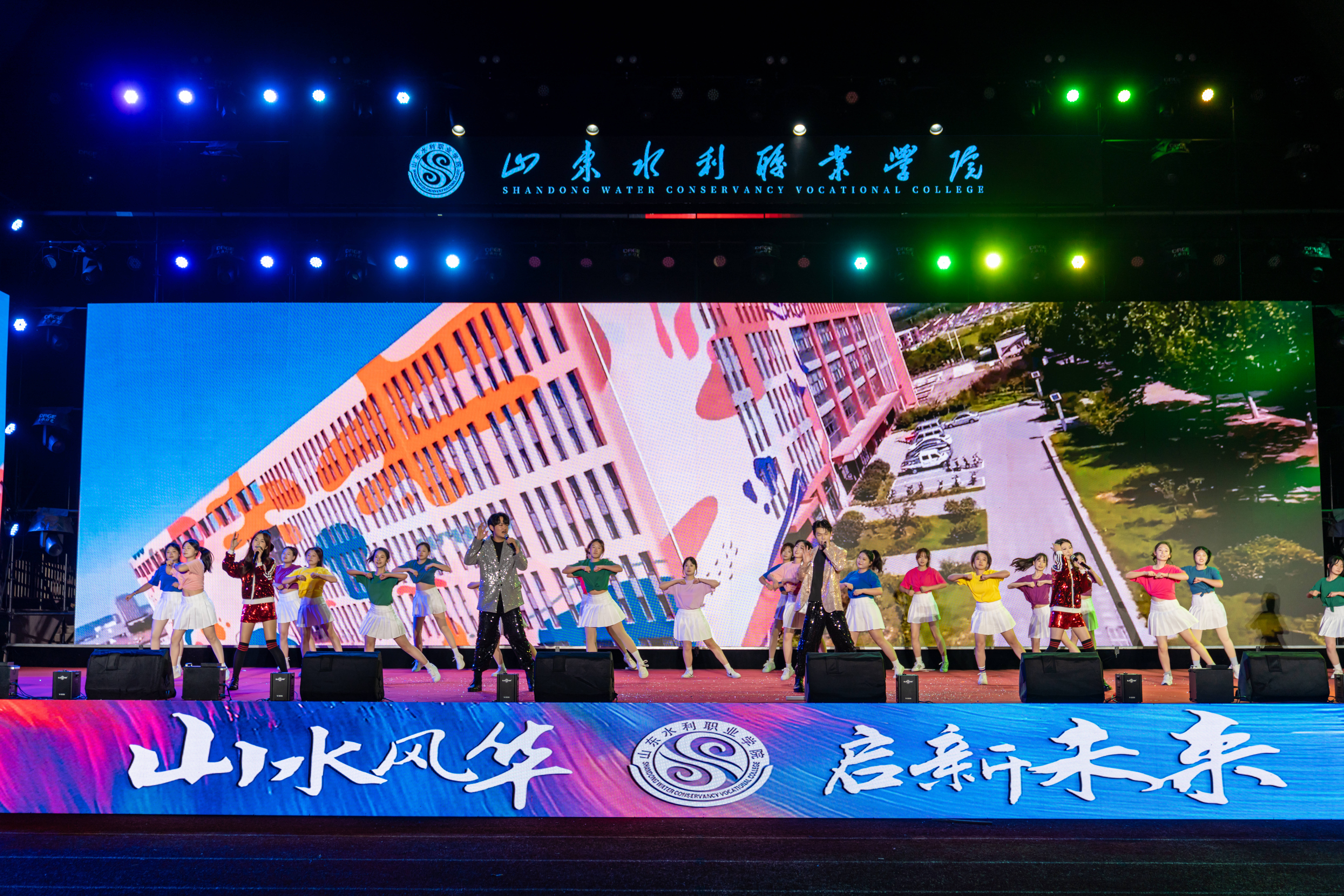 晚会在激情洋溢的乐队表演《鲜花》中拉开帷幕,瞬间点燃全场气氛。整场晚会节目形式多样,情感层层递进。相声《水院迎新序曲》以校园生活为素材,幽默诙谐,引得掌声与笑声不断;舞蹈《丰收》以饱满的情绪与舒展的舞姿,演绎出金秋九月的收获与喜悦;《芳菲蔓影明月中》以柔美舞步与典雅意境,展现深厚东方美学韵味;军体拳《热血水院》与武术《中华武魂》刚劲有力、气势如虹,彰显水院学子昂扬斗志;街舞拉丁串烧《WATER BOOM》以动感节奏与活力舞步,将现场气氛推向高潮;幕布剧《水院文艺复兴》以独特光影创意,温情复刻水院校园日常;歌伴舞《青花瓷》将水墨诗意融入翩跹舞步,营造烟雨朦胧的古典画卷;民族舞蹈《马背上的狂欢》《雪域初阳》展现多元文化交融之美;山水合唱团的《心同此愿》传递出水院人对祖国繁荣、民族复兴的美好祝愿。