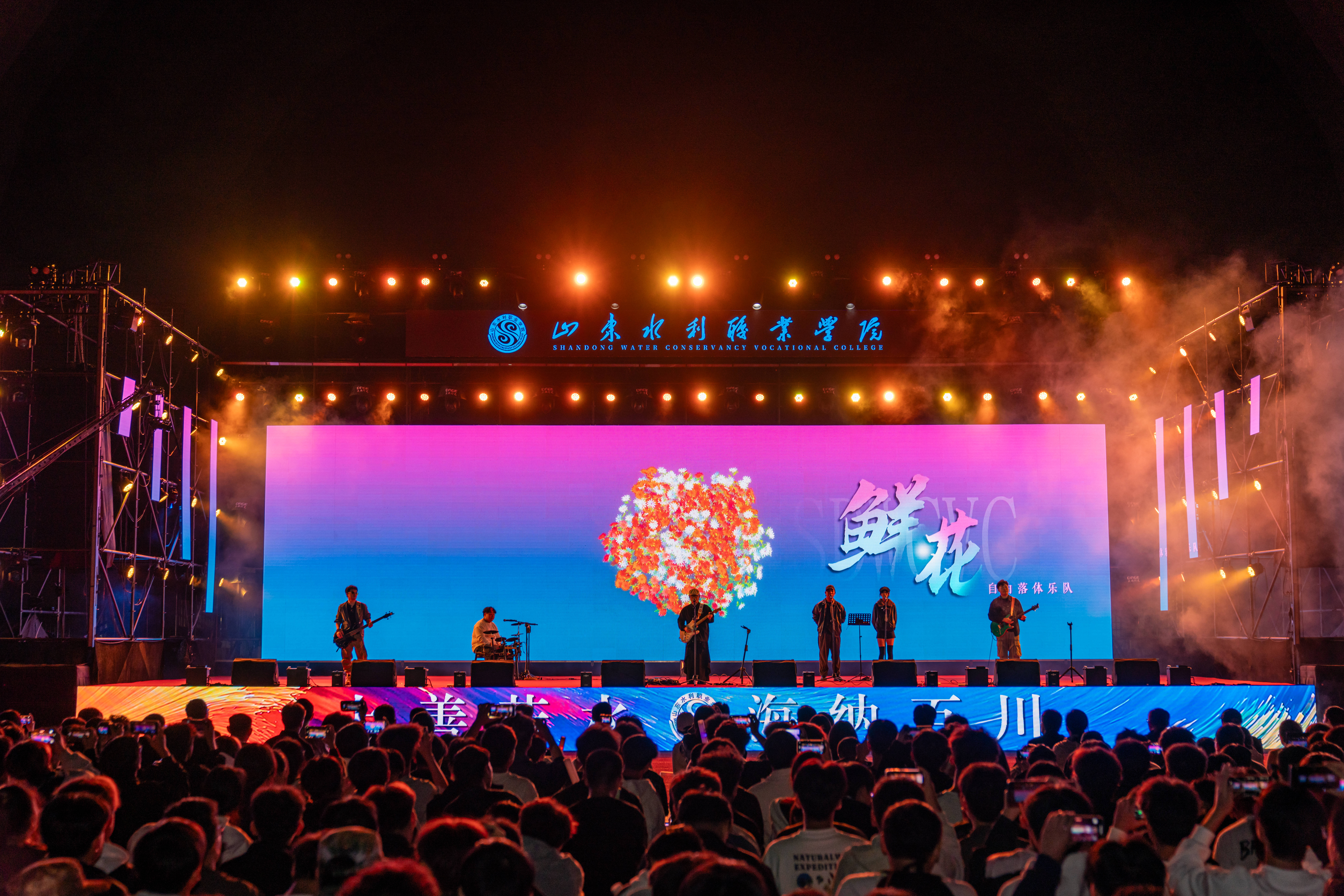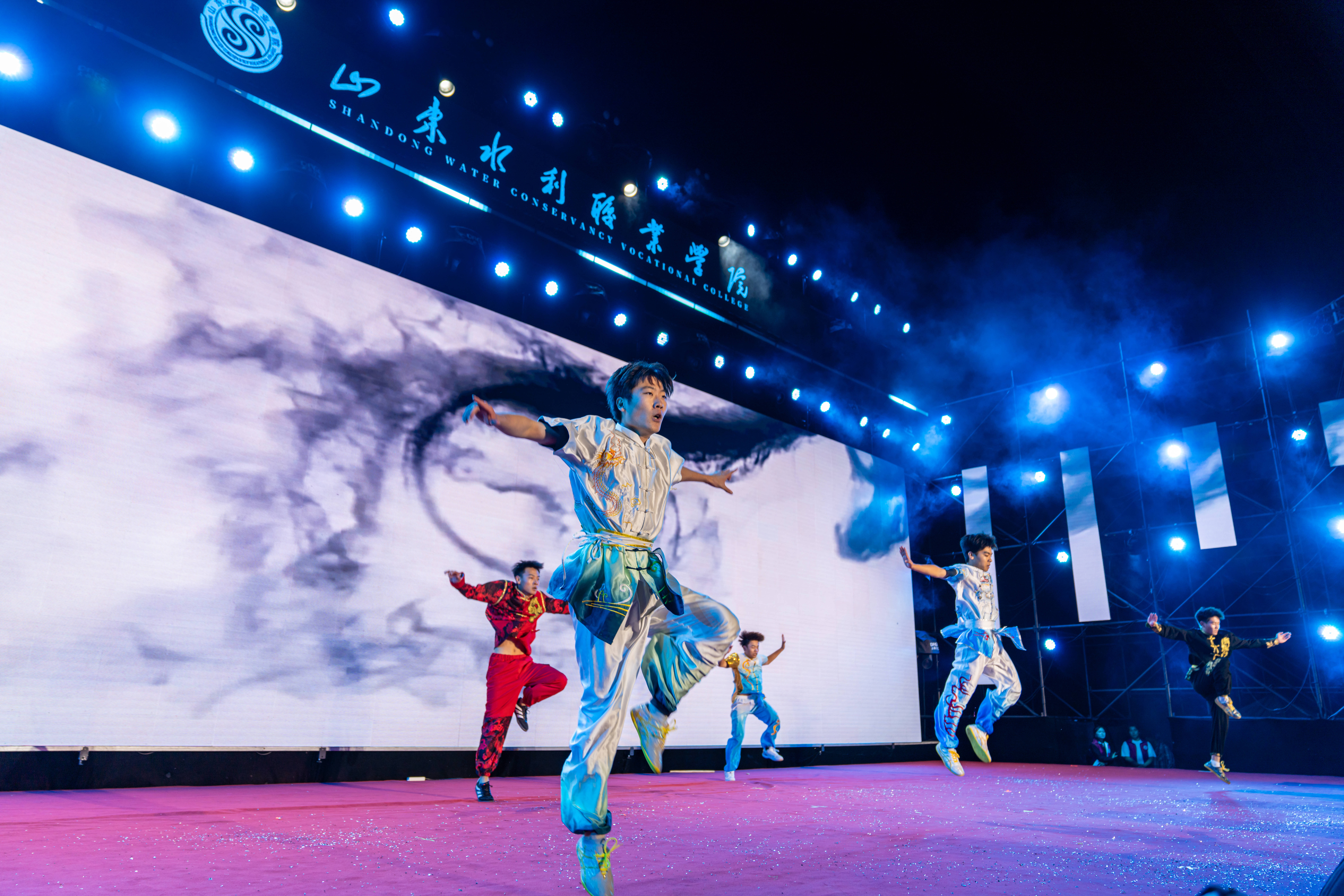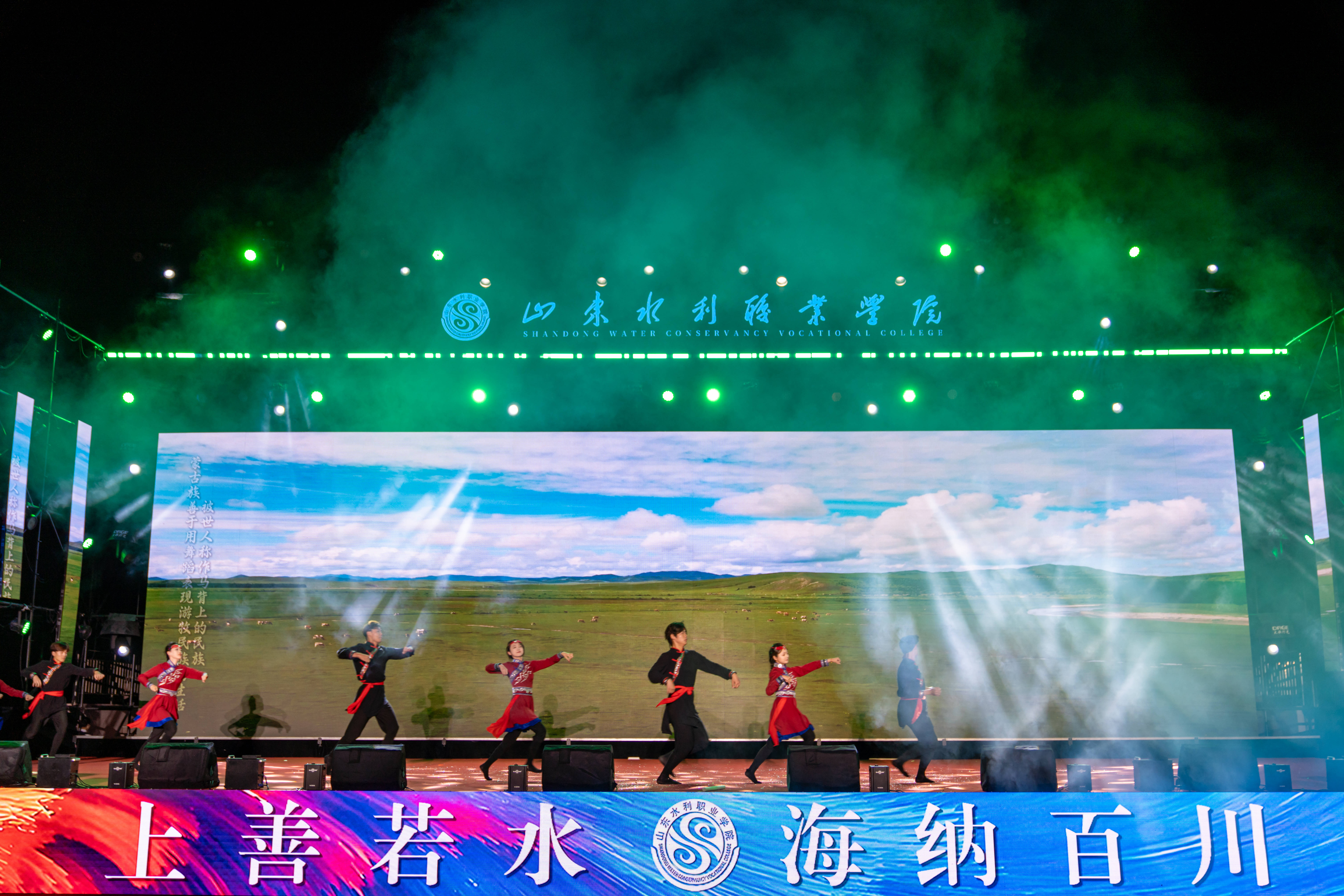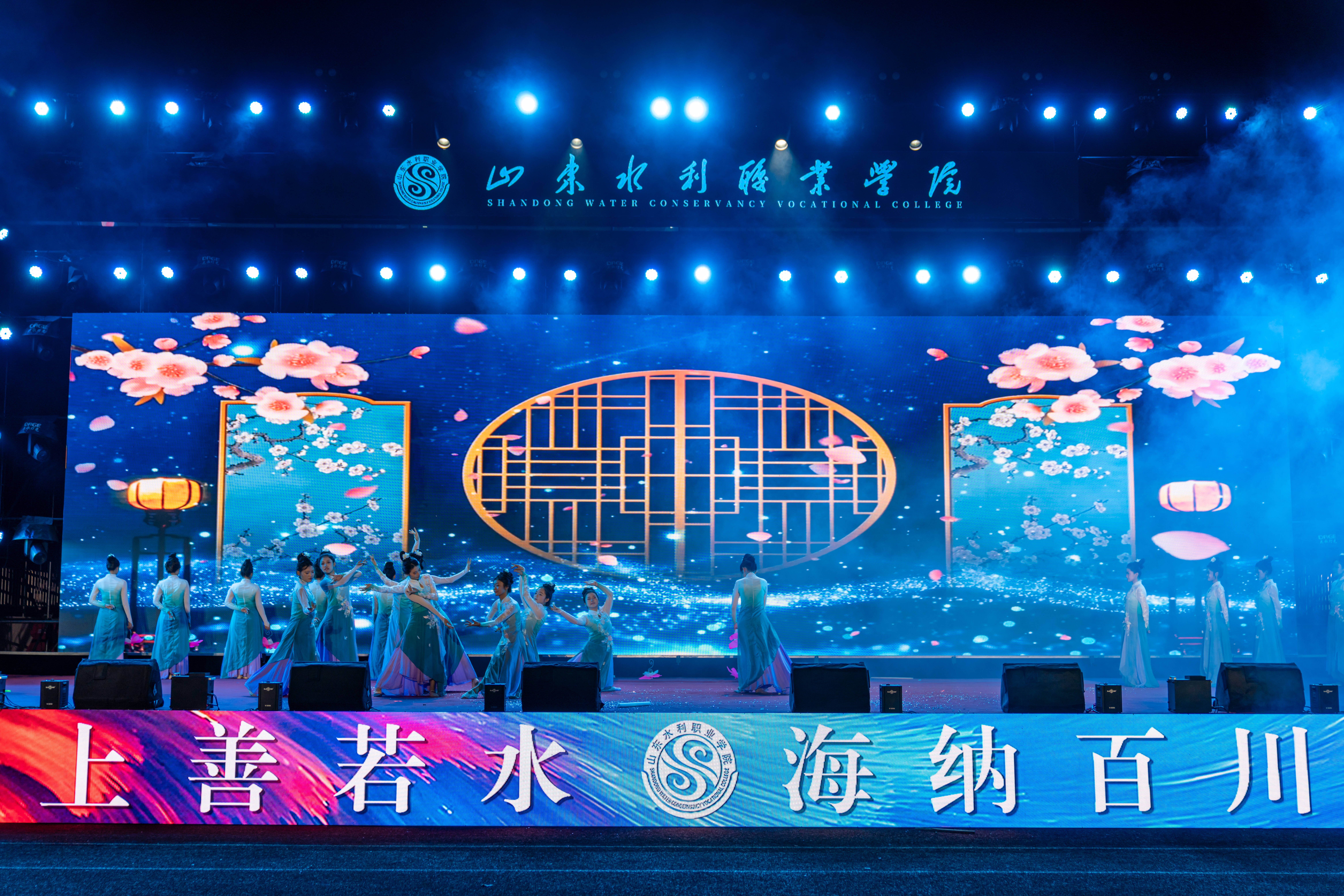 晚会在激情洋溢的乐队表演《鲜花》中拉开帷幕,瞬间点燃全场气氛。整场晚会节目形式多样,情感层层递进。相声《水院迎新序曲》以校园生活为素材,幽默诙谐,引得掌声与笑声不断;舞蹈《丰收》以饱满的情绪与舒展的舞姿,演绎出金秋九月的收获与喜悦;《芳菲蔓影明月中》以柔美舞步与典雅意境,展现深厚东方美学韵味;军体拳《热血水院》与武术《中华武魂》刚劲有力、气势如虹,彰显水院学子昂扬斗志;街舞拉丁串烧《WATER BOOM》以动感节奏与活力舞步,将现场气氛推向高潮;幕布剧《水院文艺复兴》以独特光影创意,温情复刻水院校园日常;歌伴舞《青花瓷》将水墨诗意融入翩跹舞步,营造烟雨朦胧的古典画卷;民族舞蹈《马背上的狂欢》《雪域初阳》展现多元文化交融之美;山水合唱团的《心同此愿》传递出水院人对祖国繁荣、民族复兴的美好祝愿。