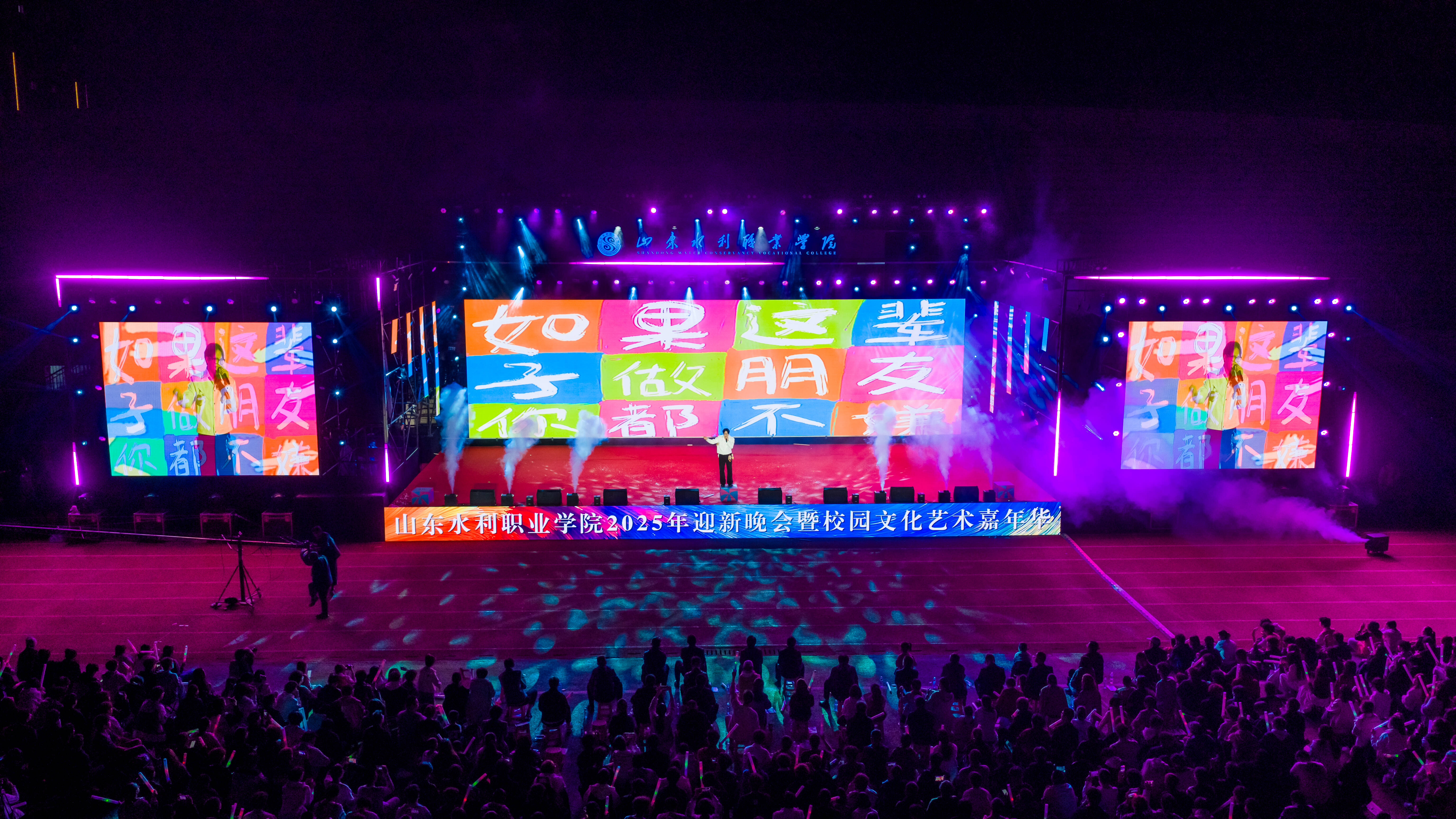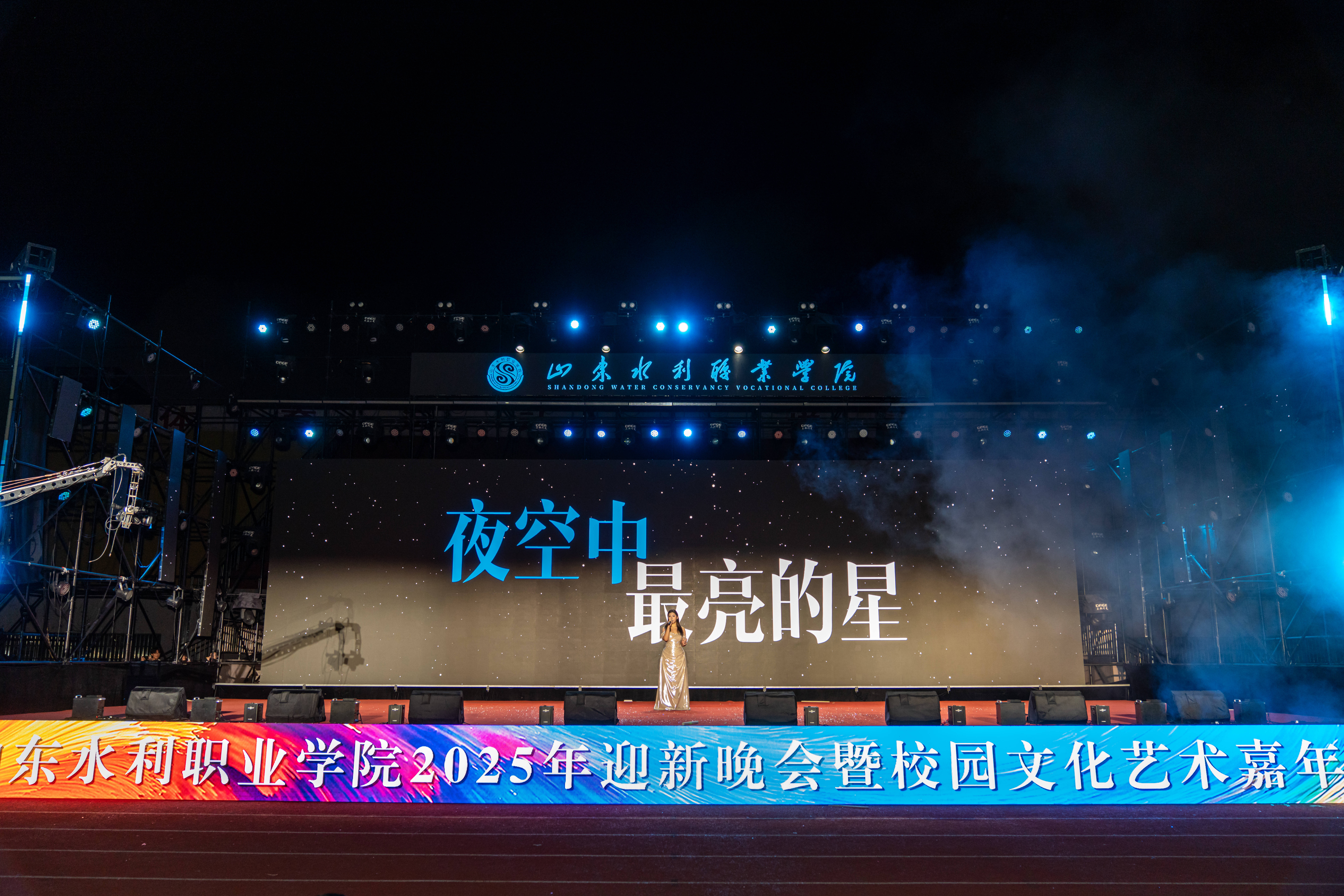 10月14日晚,学院“山水风华·启新未来”2025年迎新晚会暨校园文化艺术嘉年华在学院田径场举行。学院领导王维、杜守建、张原生、孔锋出席晚会,各系部负责人、全体学工人员及2025级全体新生共同观看了演出。