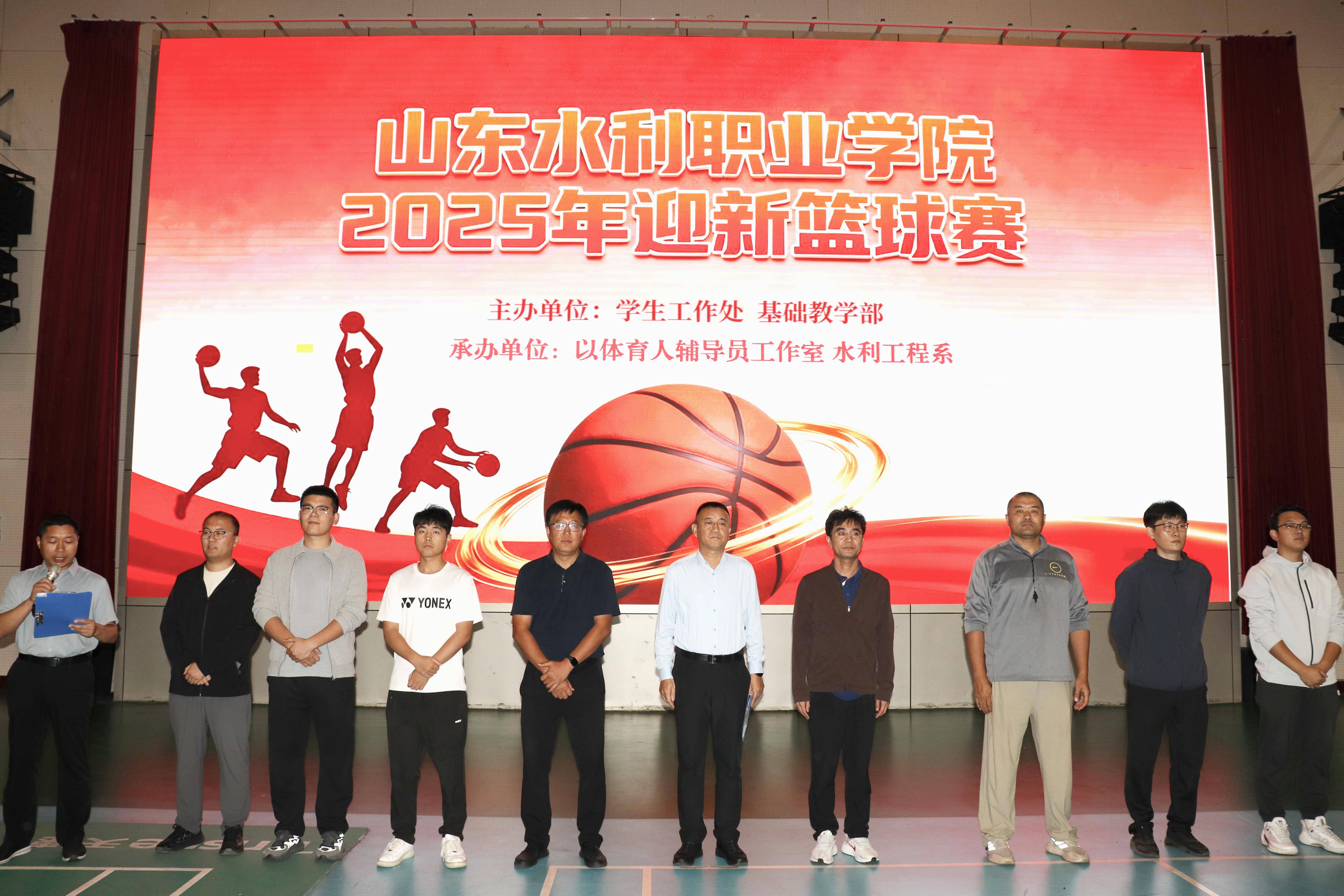 为丰富同学们的课余生活,加强体育锻炼,增强学院凝聚力,10月11日,学院举行2025年迎新篮球赛暨山东省大学生篮球联赛选拔赛启动仪式。本次赛事由学生工作处、基础教学部联合主办,“以体育人”辅导员工作室与水利工程系共同承办,共有8支队伍参赛。