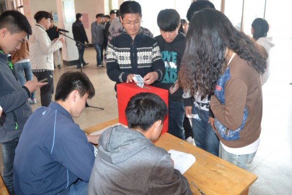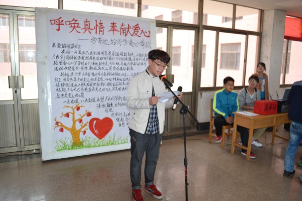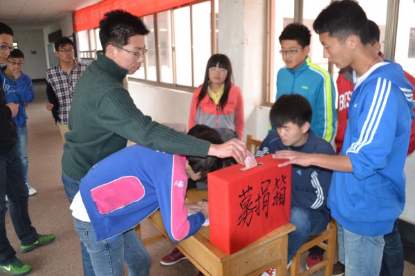 为帮助我系电气A131班在运动活动中意外受伤的刘越同学筹集治疗费,4月15日下午,由我系学生会发起的 “呼唤真情、奉献爱心”爱心捐款活动在2号楼大厅展开,号召大家为身边的同学伸出援助之手,为刘越同学尽绵薄之力。